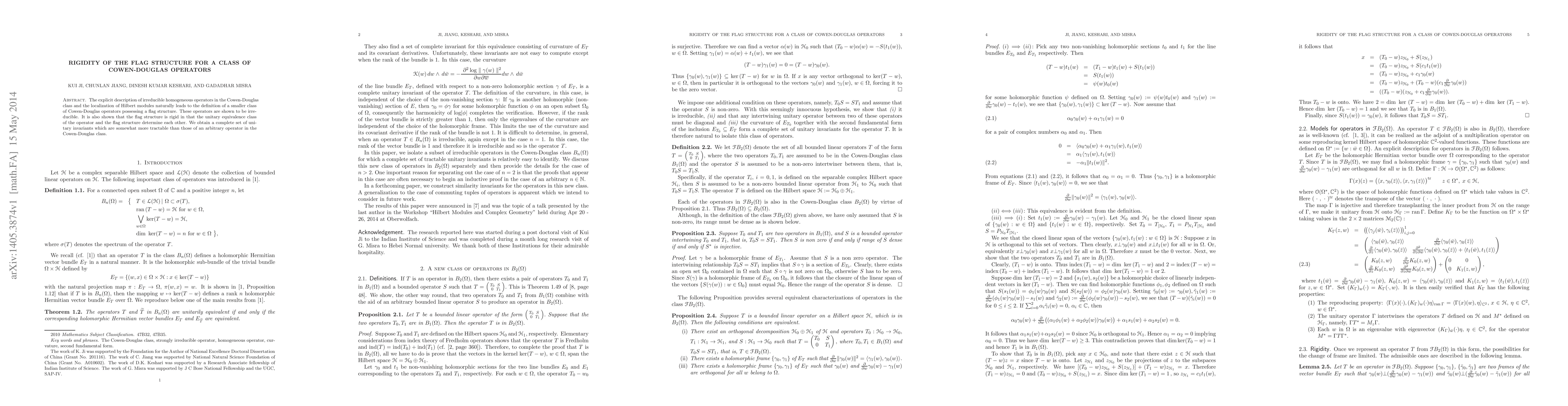 The explicit description of irreducible homogeneous operators in the Cowen-Douglas class and the localization of Hilbert modules naturally leads to the definition of a smaller class of Cowen-Douglas operators possessing a flag structure. These operators are shown to be irreducible. It is also shown that the flag structure is rigid, that is, the unitary equivalence class of the operator and the flag structure determine each other. A complete set of unitary invariants, which are somewhat more tractable than those of an arbitrary operator in the Cowen-Douglas class, are obtained.