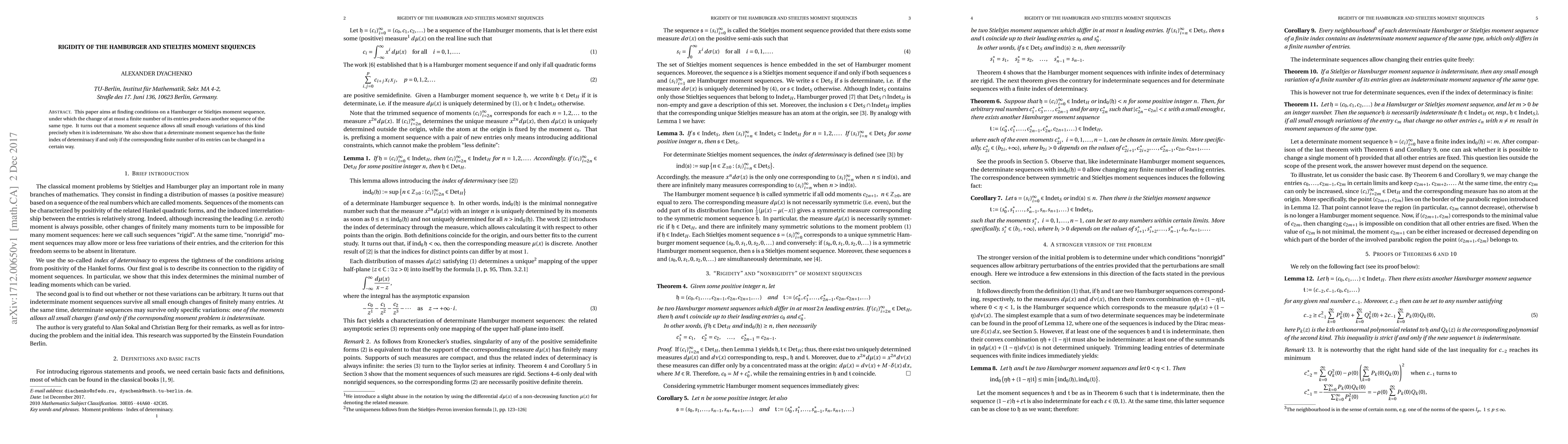 This paper investigates conditions under which a Hamburger or Stieltjes moment sequence can sustain small changes while remaining of the same type, revealing that indeterminacy allows for such variations. It concludes that determinate sequences have a finite index of determinacy if and only if a specific subset of their entries can be altered.