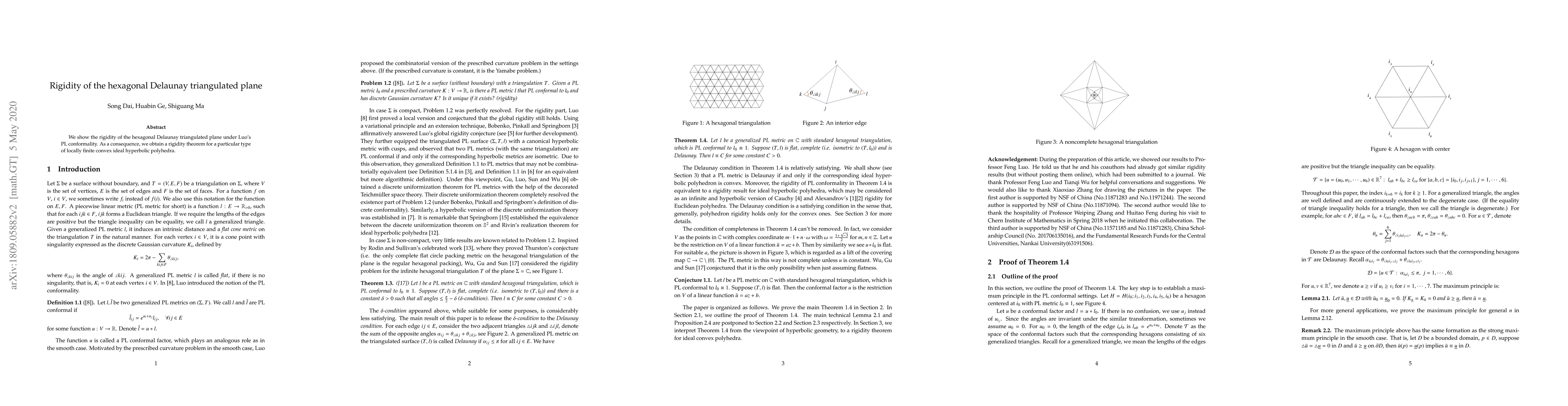 This paper demonstrates the rigidity of the hexagonal Delaunay triangulated plane under Luo's PL conformality, leading to a rigidity theorem for a specific type of locally finite convex ideal hyperbolic polyhedra.