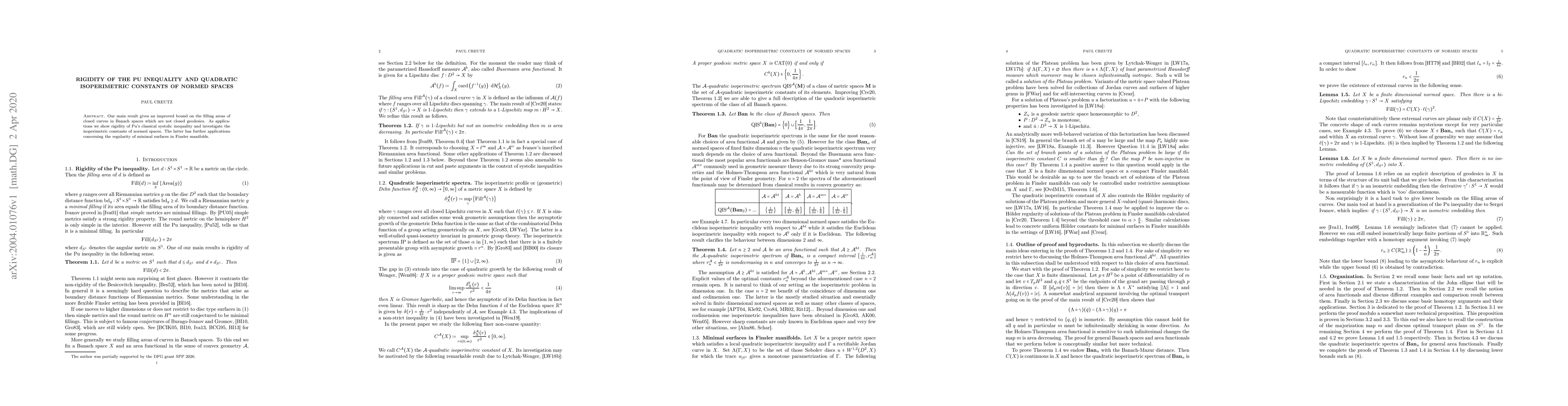 This paper improves the bound on filling areas of non-closed geodesic curves in Banach spaces, demonstrating rigidity of Pu's systolic inequality and examining the quadratic isoperimetric constants in normed spaces, with implications for minimal surface regularity in Finsler manifolds.