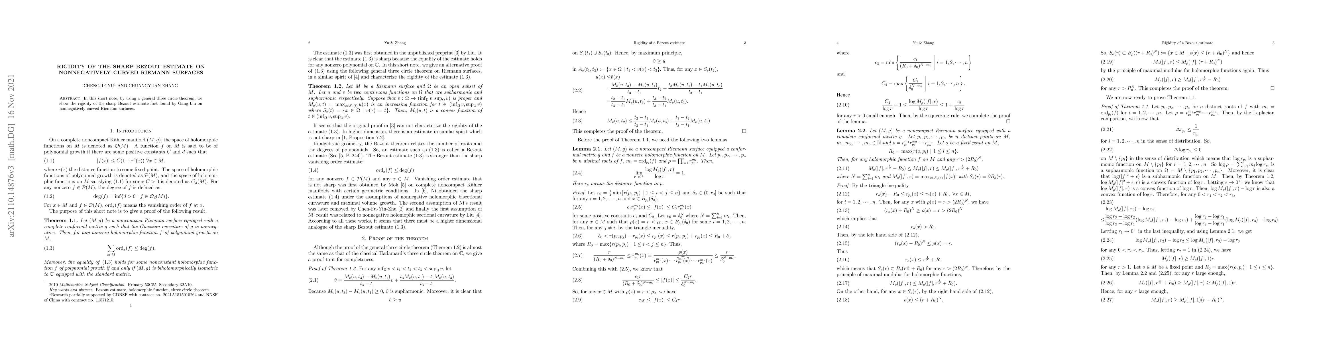 Summary: This paper demonstrates the rigidity of the sharp Bezout estimate on nonnegatively curved Riemann surfaces using a general three circle theorem, confirming the results initially established by Gang Liu.