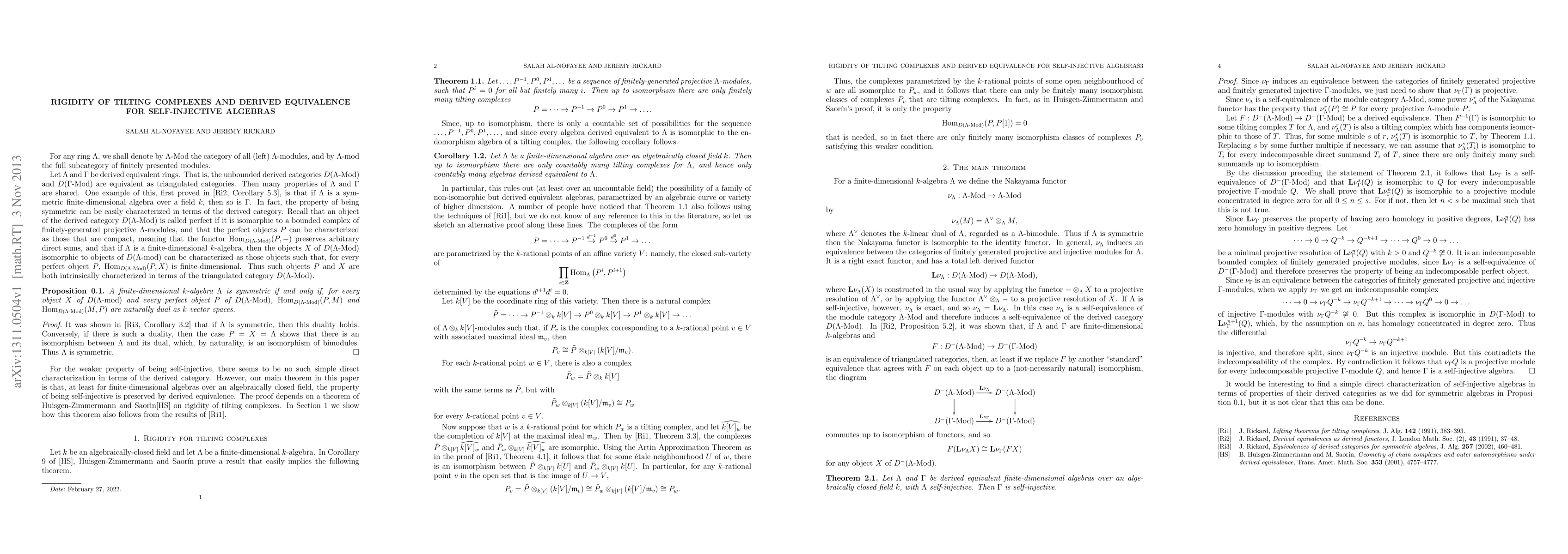 We give a proof, based on the rigidity of tilting complexes, that the class of self-injective finite-dimensional algebras over an algebraically closed field is closed under derived equivalence.
