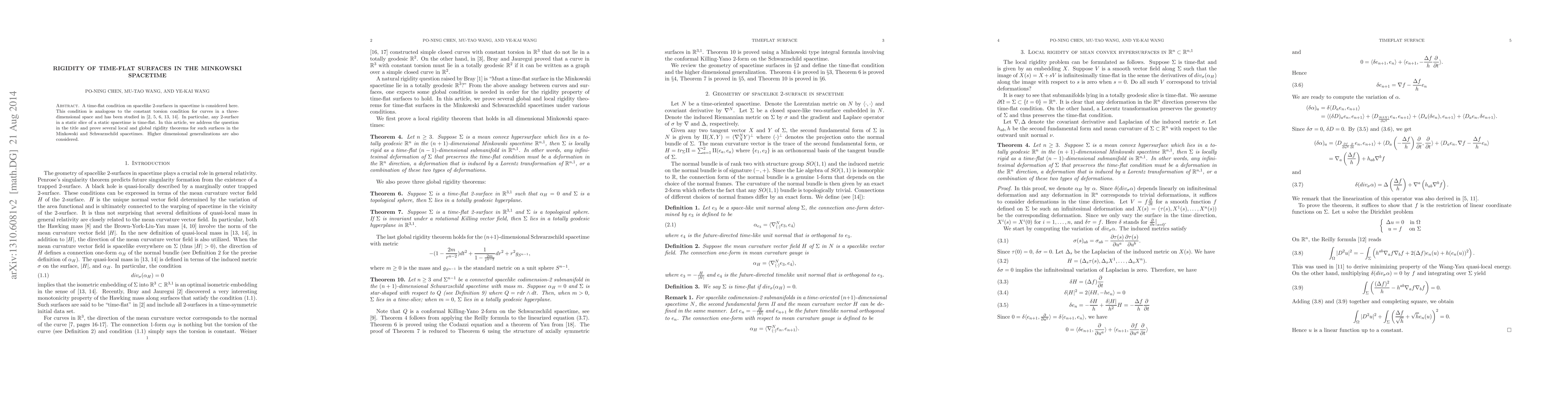 A time-flat condition on spacelike 2-surfaces in spacetime is considered here. This condition is analogous to constant torsion condition for curves in three dimensional space and has been studied in [2, 4, 5, 12, 13]. In particular, any 2-surface in a static slice of a static spacetime is time-flat. In this article, we address the question in the title and prove several local and global rigidity theorems for such surfaces in the Minkowski spacetime.
