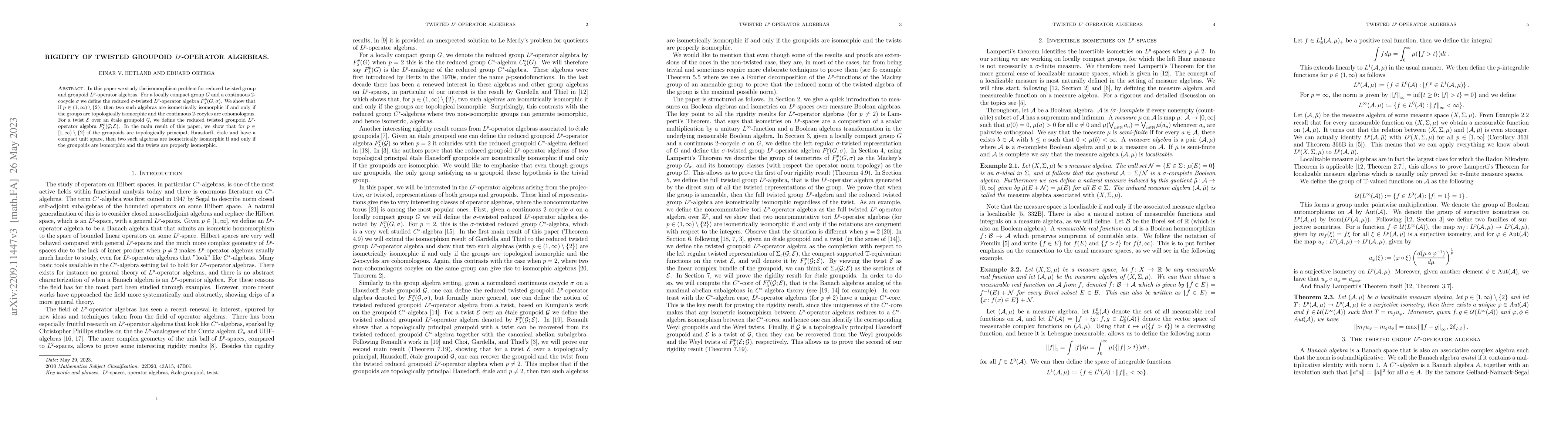 This paper investigates the isomorphism problem for reduced twisted $L^p$-operator algebras of groups and groupoids. It demonstrates that for $p \neq 2$, these algebras are isometrically isomorphic if the groups are topologically isomorphic and cocyles are cohomologous, or if groupoids are isomorphic and twists are properly isomorphic, given specific topological conditions.