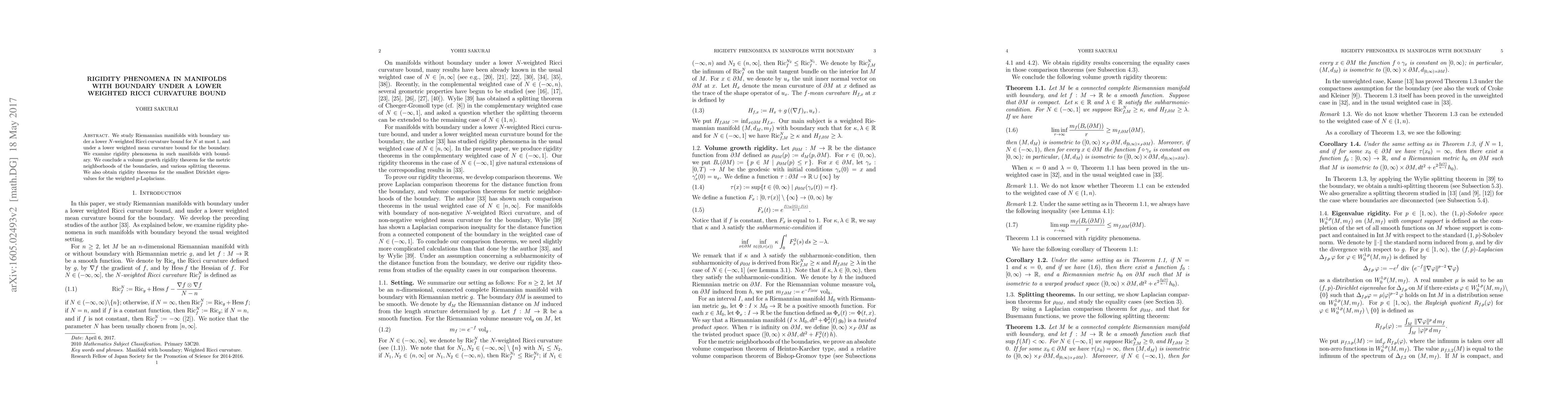 This paper investigates Riemannian manifolds with boundary under lower weighted Ricci curvature and mean curvature bounds, revealing rigidity phenomena. It establishes a volume growth rigidity theorem for boundary neighborhoods and various splitting theorems, along with rigidity results for the smallest Dirichlet eigenvalues of weighted $p$-Laplacians.