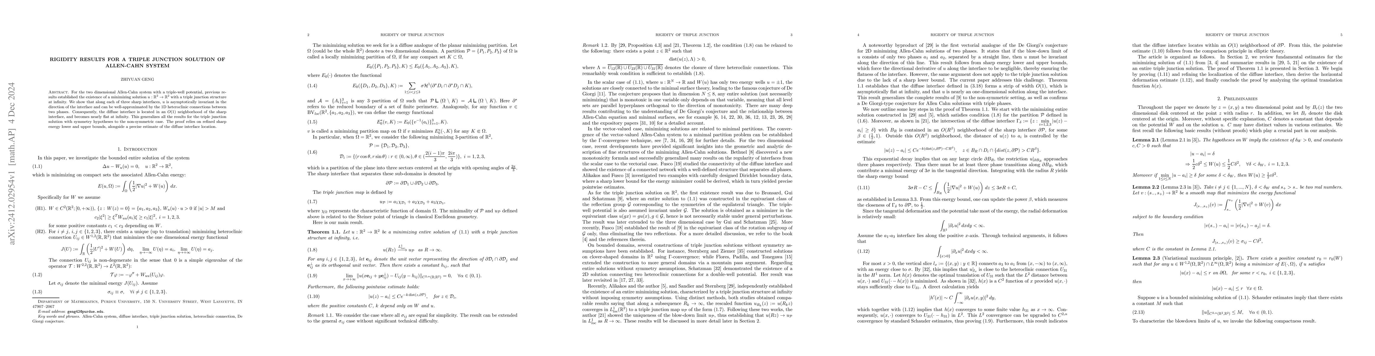For the two dimensional Allen-Cahn system with a triple-well potential, previous results established the existence of a minimizing solution $u:\mathbb{R}^2\rightarrow\mathbb{R}^2$ with a triple junction structure at infinity. We show that along each of three sharp interfaces, $u$ is asymptotically invariant in the direction of the interface and can be well-approximated by the 1D heteroclinic connections between two phases. Consequently, the diffuse interface is located in an $O(1)$ neighborhood of the sharp interface, and becomes nearly flat at infinity. This generalizes all the results for the triple junction solution with symmetry hypotheses to the non-symmetric case. The proof relies on refined sharp energy lower and upper bounds, alongside a precise estimate of the diffuse interface location.