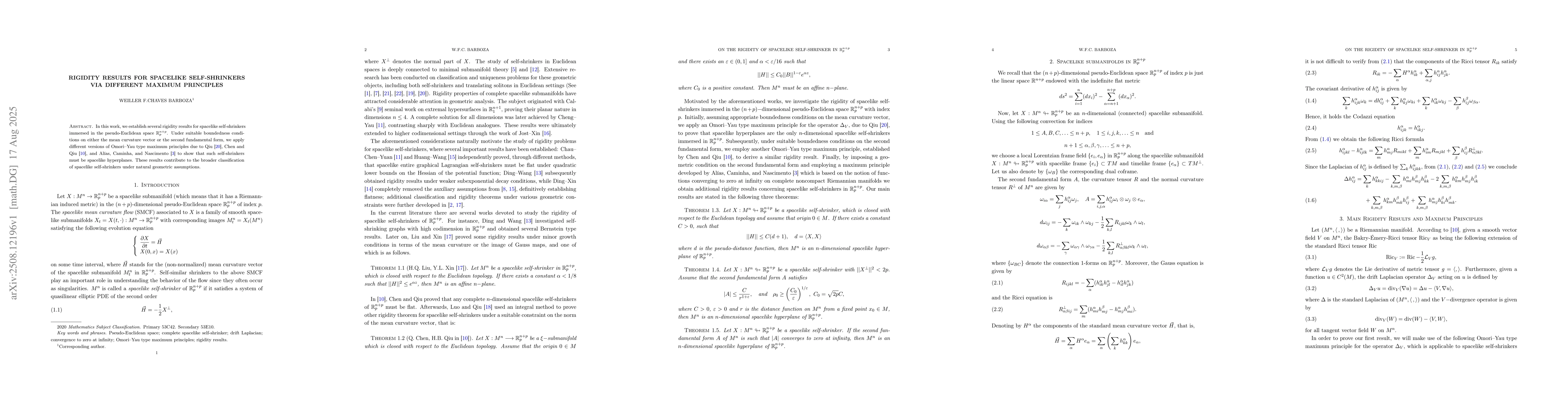 In this work, we establish several rigidity results for spacelike self-shrinkers immersed in the pseudo-Euclidean space $\mathbb{R}^{n+p}_p$. Under suitable boundedness conditions on either the mean curvature vector or the second fundamental form, we apply different versions of Omori--Yau type maximum principles due to Qiu [20], Chen and Qiu [10], and Al\'ias, Caminha, and Nascimento [3] to show that such self-shrinkers must be spacelike hyperplanes. These results contribute to the broader classification of spacelike self-shrinkers under natural geometric assumptions.