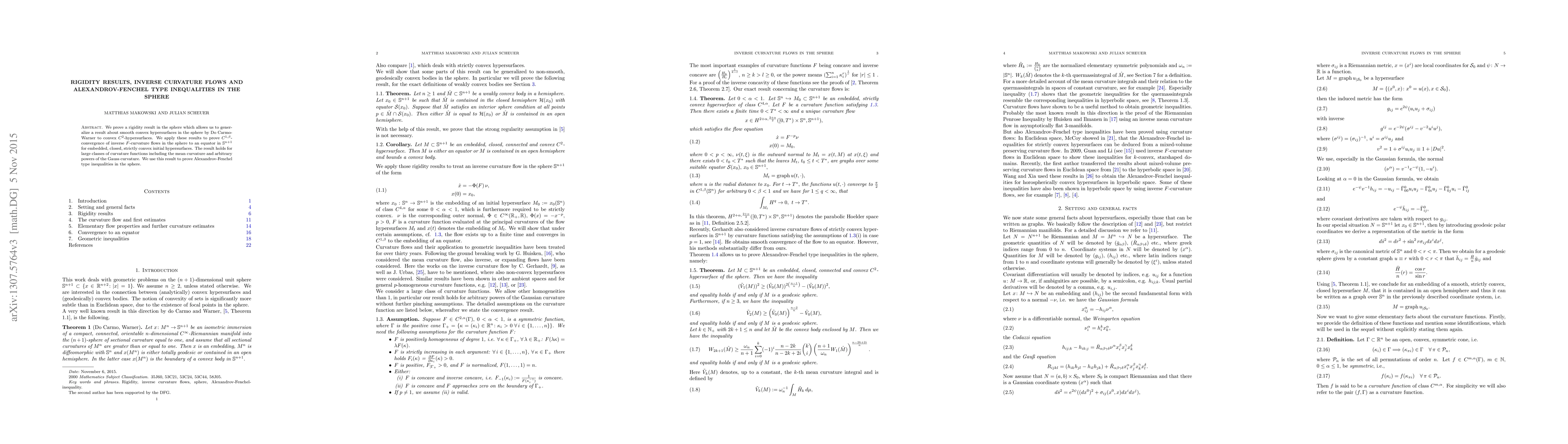 We prove a rigidity result in the sphere which allows us to generalize a result about smooth convex hypersurfaces in the sphere by Do Carmo-Warner to convex $C^2$-hypersurfaces. We apply these results to prove $C^{1,\beta}$-convergence of inverse F-curvature flows in the sphere to an equator in \mathbb{S}^{n+1} for embedded, closed, strictly convex initial hypersurfaces. The result holds for large classes of curvature functions including the mean curvature and arbitrary powers of the Gauss curvature. We use this result to prove Alexandrov-Fenchel type inequalities in the sphere.