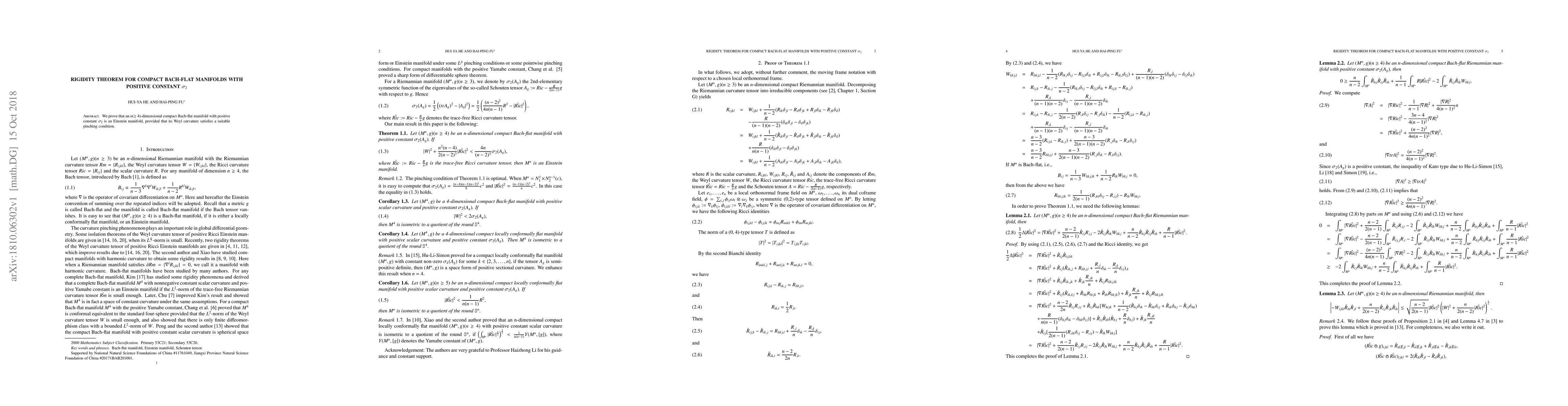 Summary: This paper proves that n-dimensional compact Bach-flat manifolds with positive constant $\sigma_2$ are Einstein manifolds under a suitable pinching condition on their Weyl curvature, provided n is at least 4. This establishes a rigidity theorem for such geometric structures.