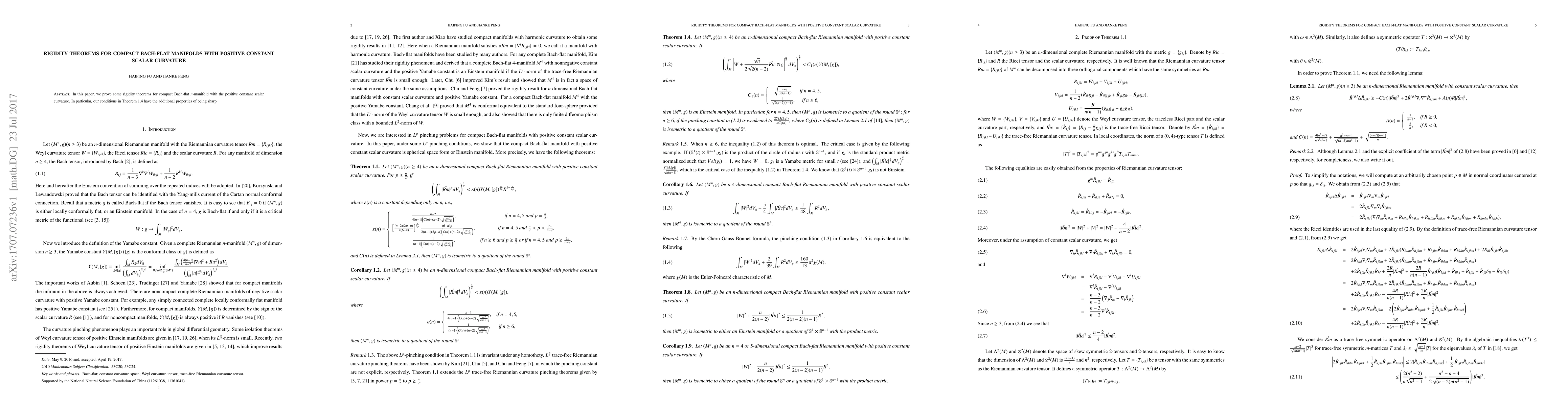 This paper proves rigidity theorems for compact Bach-flat $n$-manifolds with positive constant scalar curvature, demonstrating that the conditions in Theorem 1.4 are sharp and particularly stringent.