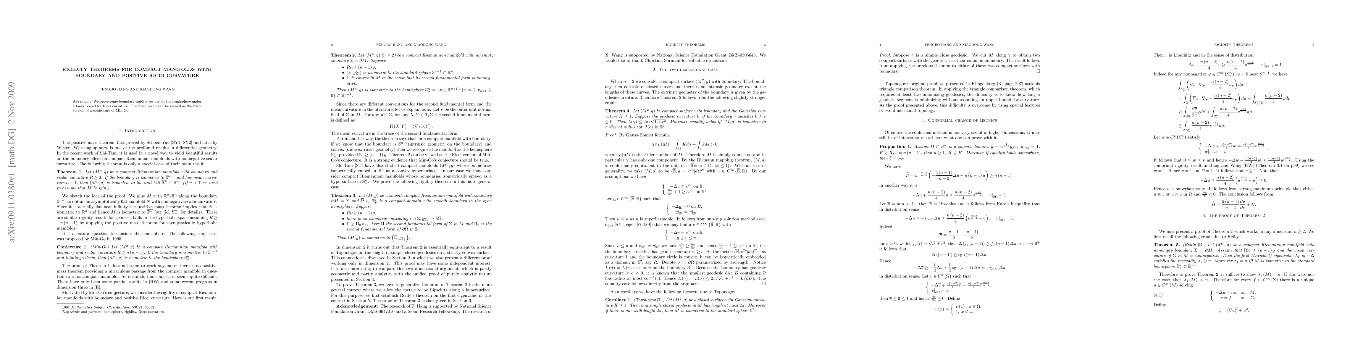 Researchers prove boundary rigidity results for hemispheres with positive Ricci curvature, building on a conjecture of Min-Oo, providing new insights into the geometry of compact manifolds.