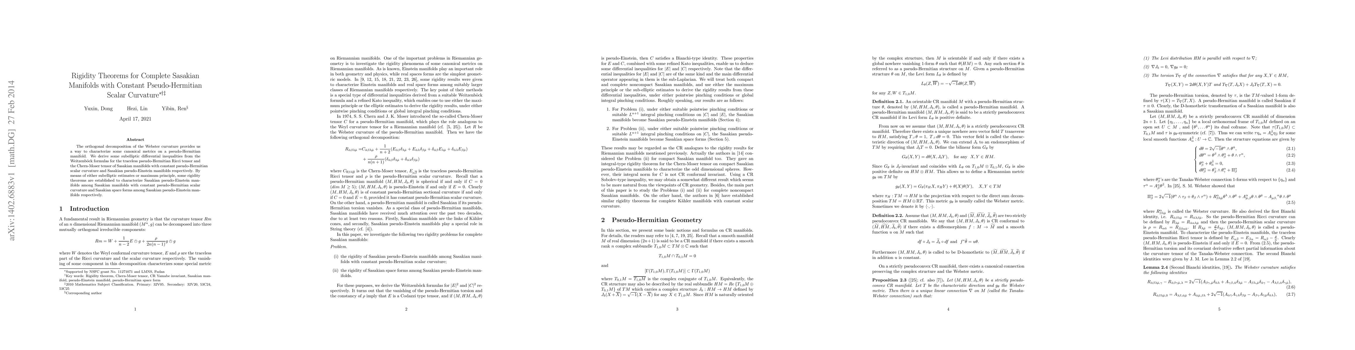 The orthogonal decomposition of the Webster curvature provides us a way to characterize some canonical metrics on a pseudo-Hermitian manifold. We derive some subelliptic differential inequalities from the Weitzenb\"ock formulas for the traceless pseudo-Hermitian Ricci tensor and the Chern-Moser tensor of Sasakian manifolds with constant pseudo-Hermitian scalar curvature and Sasakian pseudo-Einstein manifolds respectively. By means of either subelliptic estimates or maximum principle, some rigidity theorems are established to characterize Sasakian pseudo-Einstein manifolds among Sasakian manifolds with constant pseudo-Hermitian scalar curvature and Sasakian space forms among Sasakian pseudo-Einstein manifolds respectively.