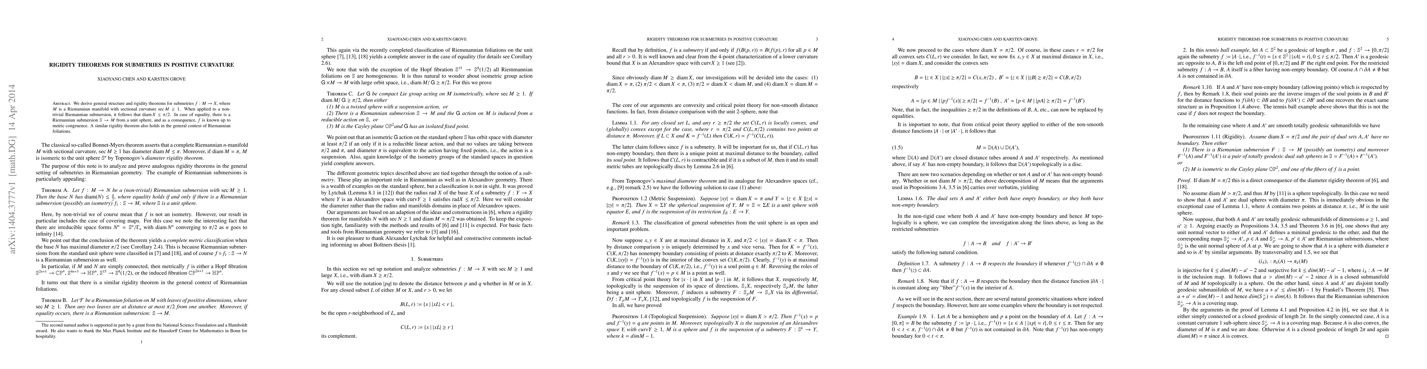 Researchers developed a rigidity theorem for submetries in positive curvature, showing that non-trivial Riemannian submersions from manifolds with sectional curvature >= 1 can only map to spaces within a diameter of π/2.