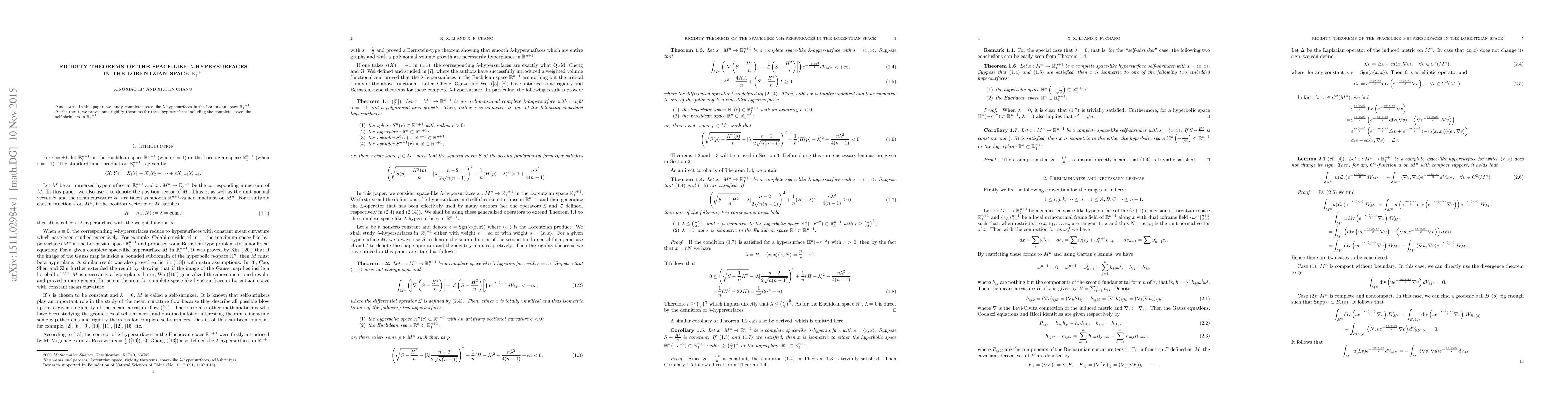 In this paper, we study complete space-like $\lambda$-hypersurfaces in the Lorentzian space $\mathbb R^{n+1}_1$. As the result, we prove some rigidity theorems for these hypersurfaces including the complete space-like self-shrinkers in $\bbr^{n+1}_1$.
