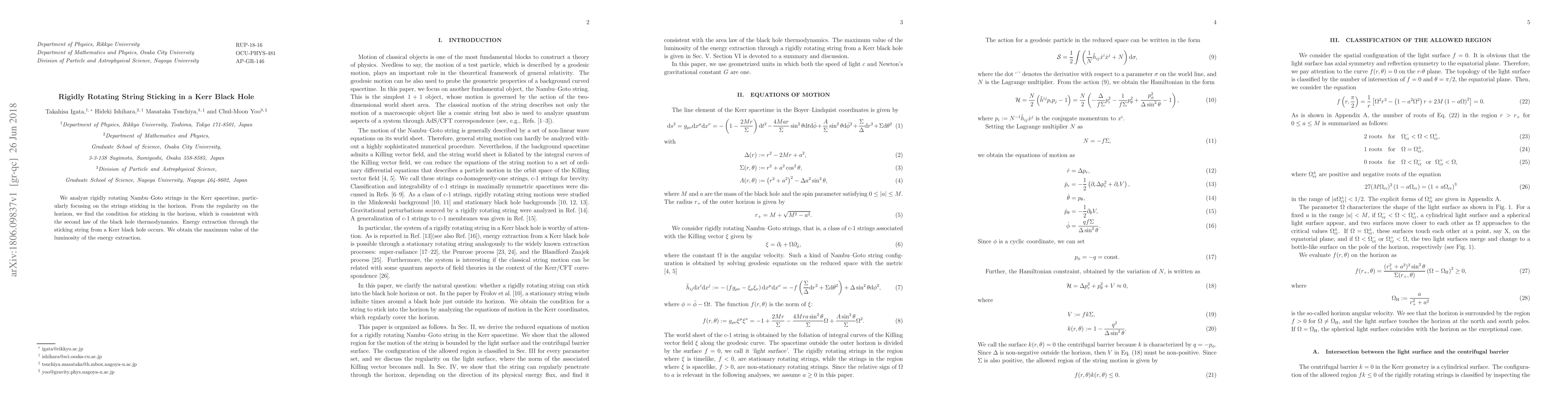 Researchers study how a rotating string can stick to a black hole's horizon and extract energy, finding conditions for sticking and maximum luminosity of extracted energy.