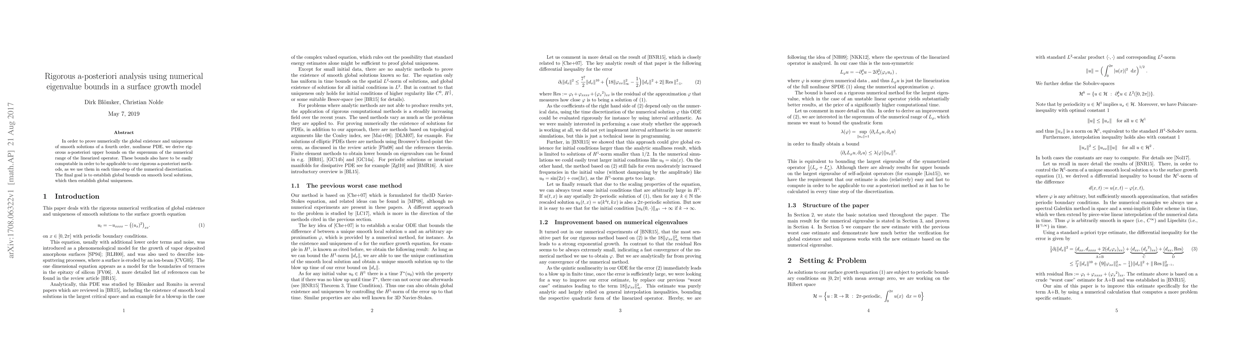 In order to prove numerically the global existence and uniqueness of smooth solutions of a fourth order, nonlinear PDE, we derive rigorous a-posteriori upper bounds on the supremum of the numerical range of the linearized operator. These bounds also have to be easily computable in order to be applicable to our rigorous a-posteriori methods, as we use them in each time-step of the numerical discretization. The final goal is to establish global bounds on smooth local solutions, which then establish global uniqueness.