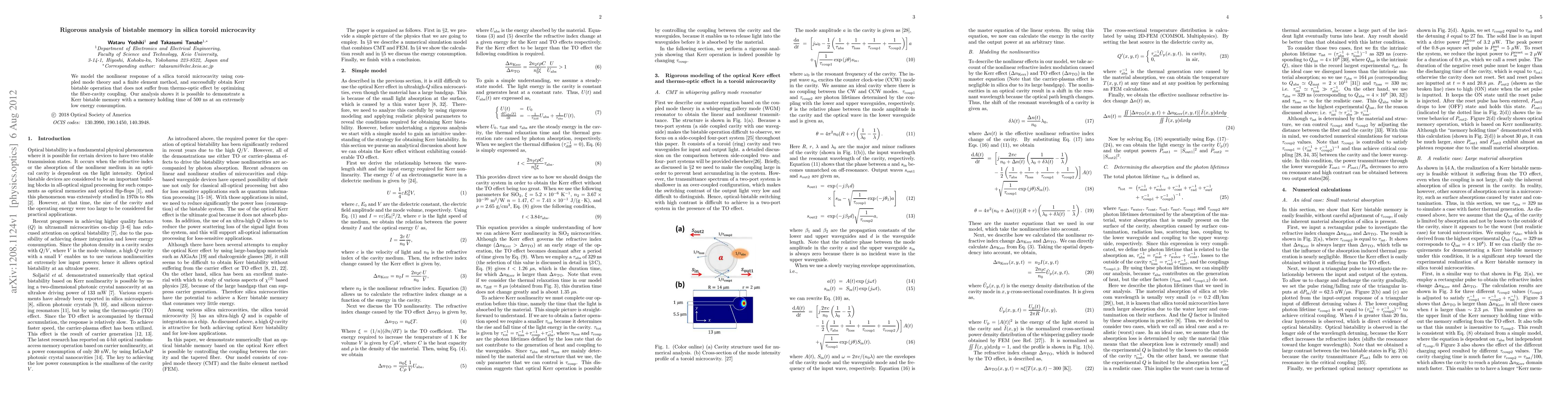 This paper models a silica toroid microcavity's nonlinear response to achieve Kerr bistable operation, optimizing fiber-cavity coupling to avoid thermo-optic effects. The analysis demonstrates a bistable memory with a 500 ns holding time and minimal energy consumption.