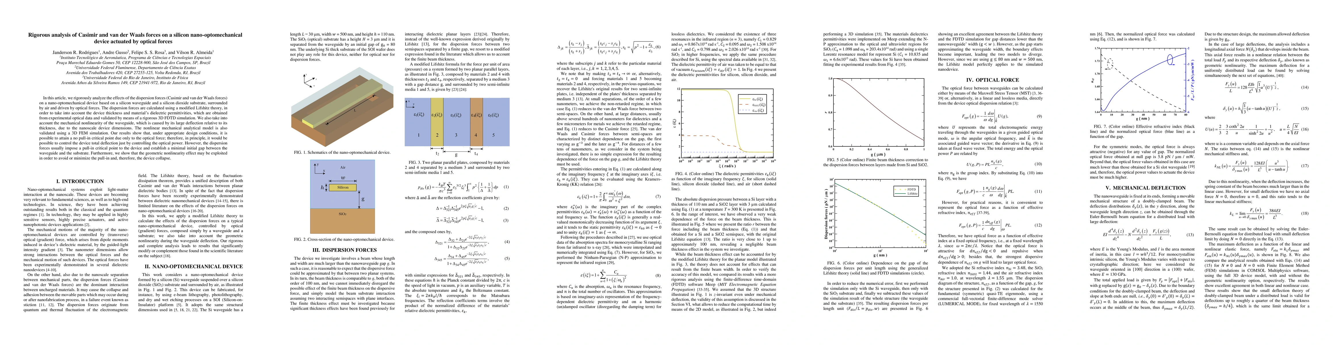 This paper rigorously analyzes the impact of Casimir and van der Waals forces on a silicon nano-optomechanical device driven by optical forces, using modified Lifshitz theory and validated simulations. The study reveals that under specific conditions, optical forces alone can control the device deflection, while dispersion forces typically cause a pull-in effect, which can be mitigated by exploiting geometric nonlinearity.