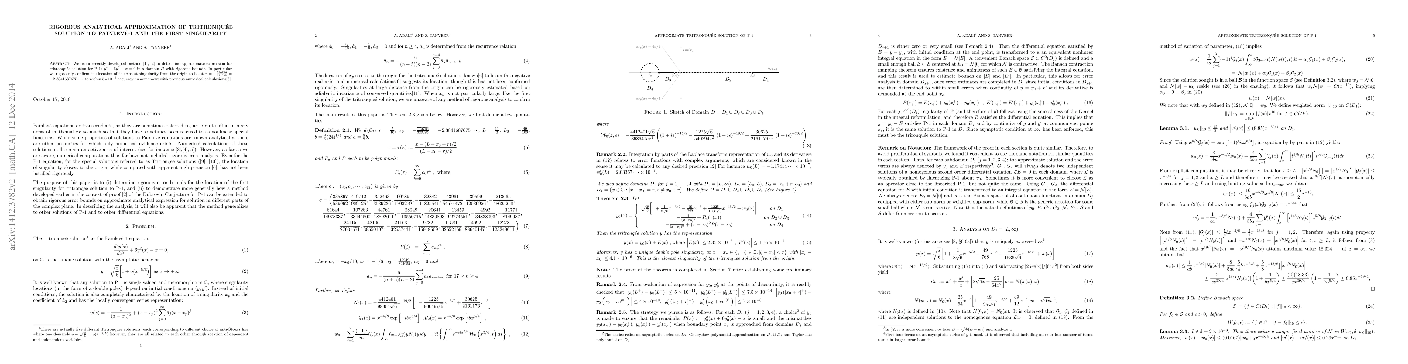 We use a recently developed method to determine approximate expression for tritronqu\'{e}e solution for P-1: $y^{\prime \prime} + 6 y^2 - x=0$ in a domain $D$ with rigorous bounds. In particular we rigorously confirm the location of the closest singularity from the origin to be at $x= - \frac{770766}{323285} = -2.3841687675\cdots$ to within $5 \times 10^{-6}$ accuracy, in agreement with previous numerical calculation.