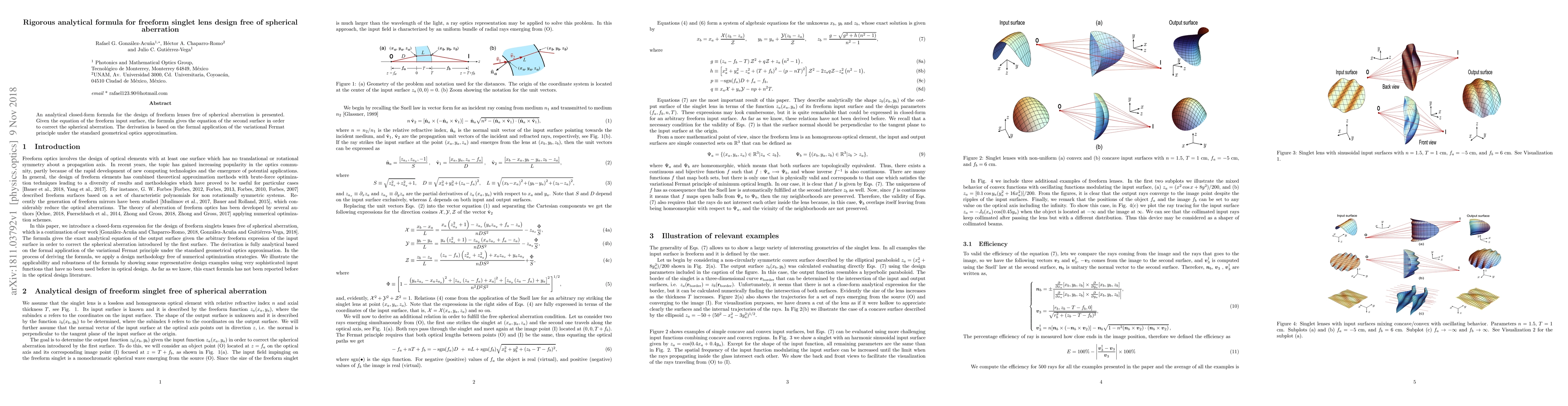 This paper presents an analytical closed-form formula for designing freeform singlet lenses that eliminate spherical aberration. The formula derives the second surface equation based on the variational Fermat principle and standard geometrical optics approximation.