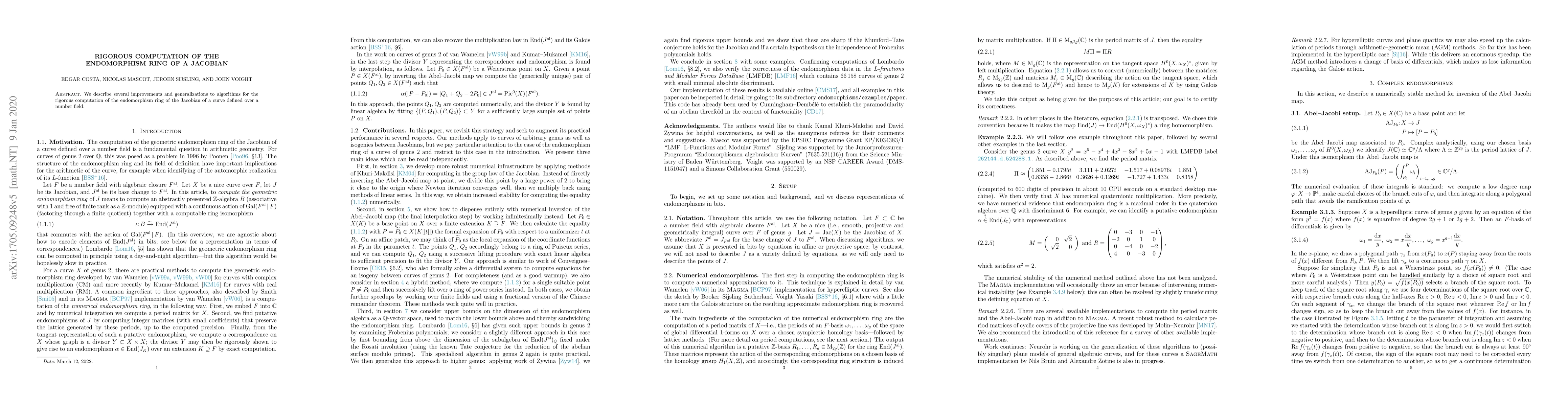 We describe several improvements to algorithms for the rigorous computation of the endomorphism ring of the Jacobian of a curve defined over a number field.