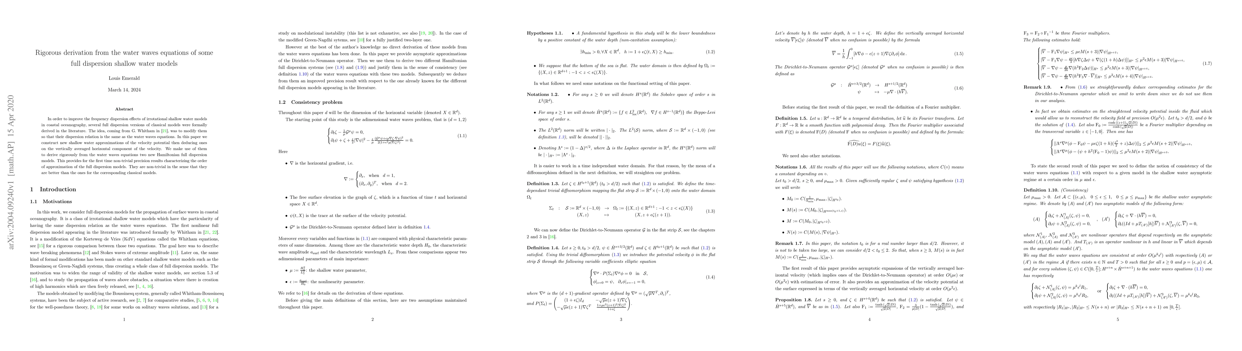 In order to improve the frequency dispersion effects of irrotational shallow water models in coastal oceanography, several full dispersion versions of classical models were formally derived in the literature. The idea, coming from G. Whitham in [21], was to modify them so that their dispersion relation is the same as the water waves equations. In this paper we construct new shallow water approximations of the velocity potential then deducing ones on the vertically averaged horizontal component of the velocity. We make use of them to derive rigorously from the water waves equations two new Hamiltonian full dispersion models. This provides for the first time non-trivial precision results characterizing the order of approximation of the full dispersion models. They are non-trivial in the sense that they are better than the ones for the corresponding classical models.