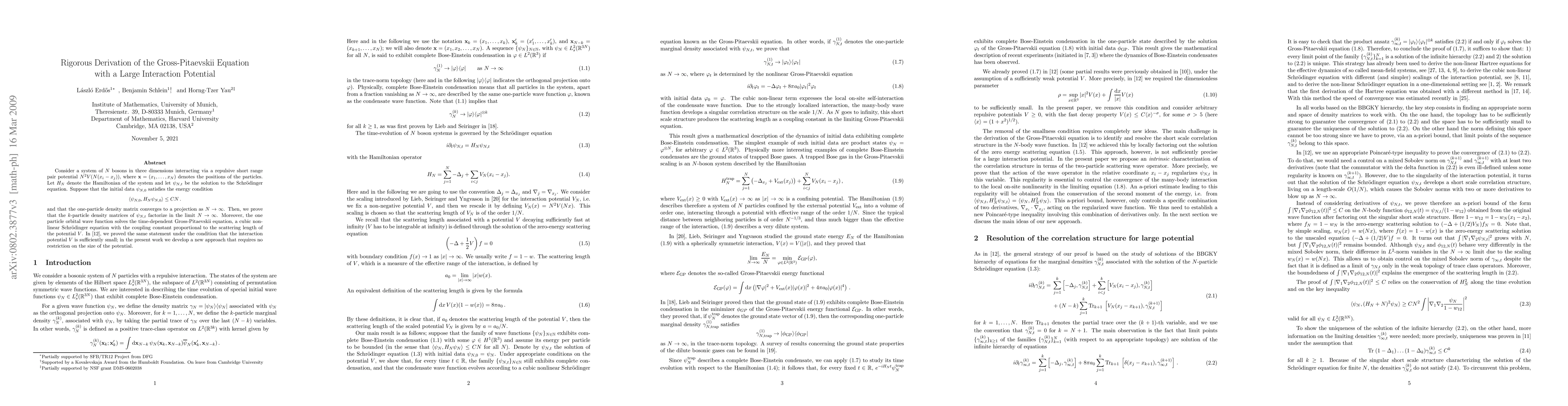 This paper derives a rigorous solution to the Gross-Pitaevskii equation for bosons with large interaction potentials, showing that the one-particle density matrix solves a cubic non-linear Schr"odinger equation.