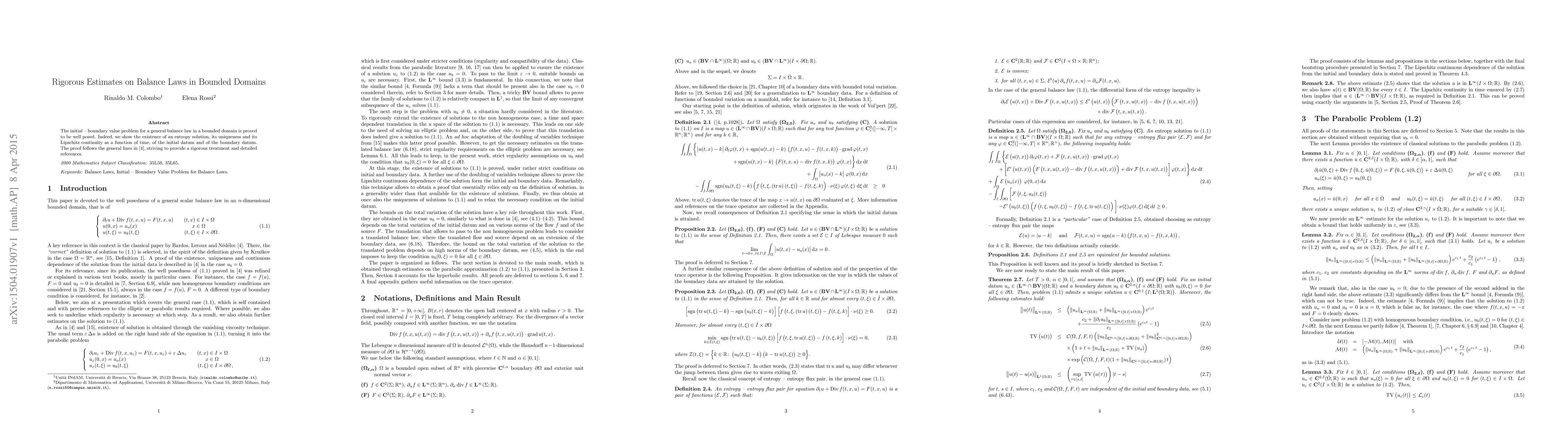 The initial-boundary value problem for a general balance law in a bounded domain is proved to be well posed. Indeed, we show the existence of an entropy solution, its uniqueness and its Lipschitz continuity as a function of time, of the initial datum and of the boundary datum. The proof follows the general lines in Bardos, Leroux and N\'ed\'elec (1979), striving to provide a rigorous treatment and detailed references.