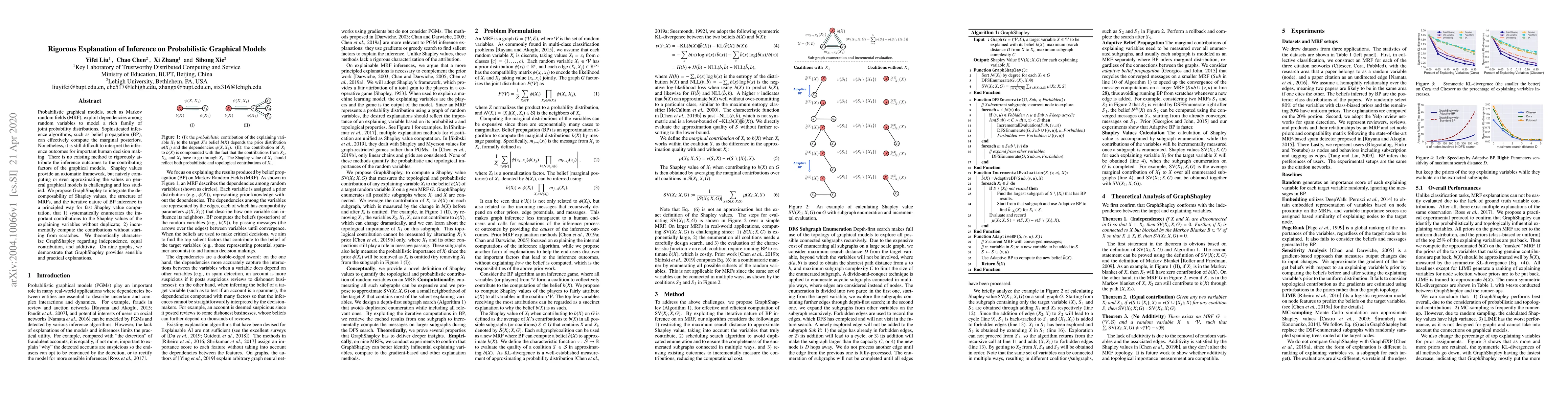 Probabilistic graphical models, such as Markov random fields (MRF), exploit dependencies among random variables to model a rich family of joint probability distributions. Sophisticated inference algorithms, such as belief propagation (BP), can effectively compute the marginal posteriors. Nonetheless, it is still difficult to interpret the inference outcomes for important human decision making. There is no existing method to rigorously attribute the inference outcomes to the contributing factors of the graphical models. Shapley values provide an axiomatic framework, but naively computing or even approximating the values on general graphical models is challenging and less studied. We propose GraphShapley to integrate the decomposability of Shapley values, the structure of MRFs, and the iterative nature of BP inference in a principled way for fast Shapley value computation, that 1) systematically enumerates the important contributions to the Shapley values of the explaining variables without duplicate; 2) incrementally compute the contributions without starting from scratches. We theoretically characterize GraphShapley regarding independence, equal contribution, and additivity. On nine graphs, we demonstrate that GraphShapley provides sensible and practical explanations.