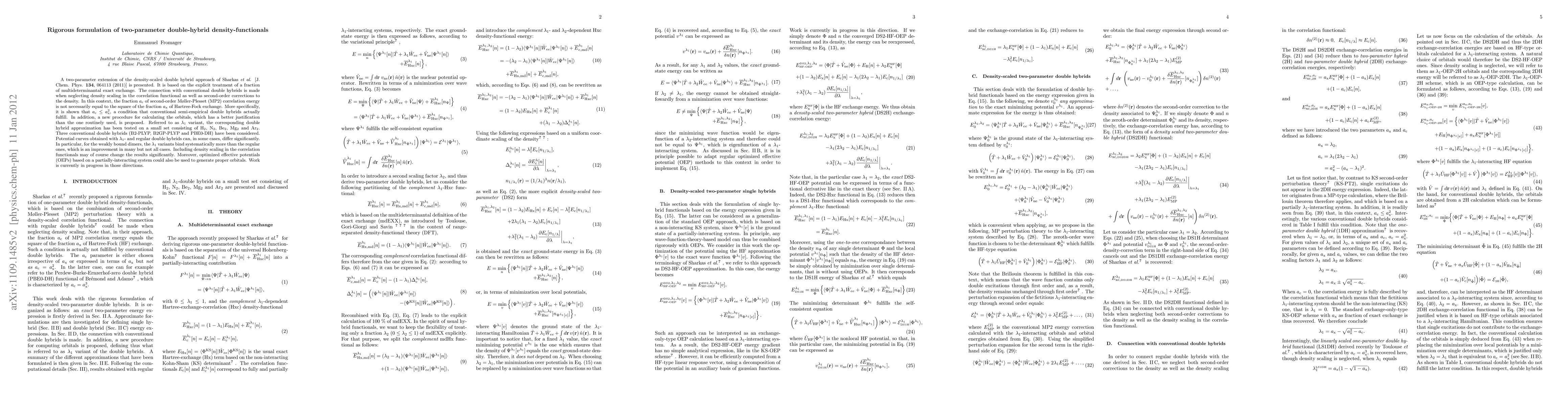 A two-parameter extension of the density-scaled double hybrid approach of Sharkas et al. [J. Chem. Phys. 134, 064113 (2011)] is presented. It is based on the explicit treatment of a fraction of multideterminantal exact exchange. The connection with conventional double hybrids is made when neglecting density scaling in the correlation functional as well as second-order corrections to the density. In this context, the fraction ac of second-order M{\o}ller-Plesset (MP2) correlation energy is not necessarily equal to the square of the fraction ax of Hartree-Fock exchange. More specifically, it is shown that ac \leq ax2, a condition that conventional semi-empirical double hybrids actually fulfill. In addition, a new procedure for calculating the orbitals, which has a better justification than the one routinely used, is proposed. Referred to as {\lambda}1 variant, the corresponding double hybrid approximation has been tested on a small set consisting of H2, N2, Be2, Mg2, and Ar2. Three conventional double hybrids (B2-PLYP, B2GP-PLYP, and PBE0-DH) have been considered. Potential curves obtained with {\lambda}1- and regular double hybrids can, in some cases, differ significantly. In particular, for the weakly bound dimers, the {\lambda}1 variants bind systematically more than the regular ones, which is an improvement in many but not all cases. Including density scaling in the correlation functionals may of course change the results significantly. Moreover, optimized effective potentials based on a partially-interacting system could also be used to generate proper orbitals. Work is currently in progress in those directions.