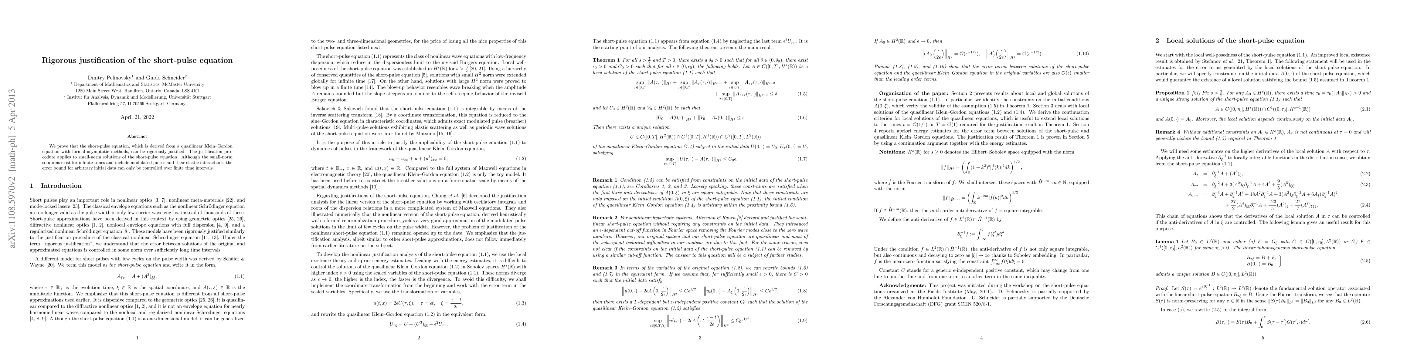 This paper rigorously justifies the short-pulse equation derived from Maxwell's equations using asymptotic methods, proving the existence of small-norm solutions for infinite time. However, error bounds for arbitrary initial data are only valid over finite time intervals.