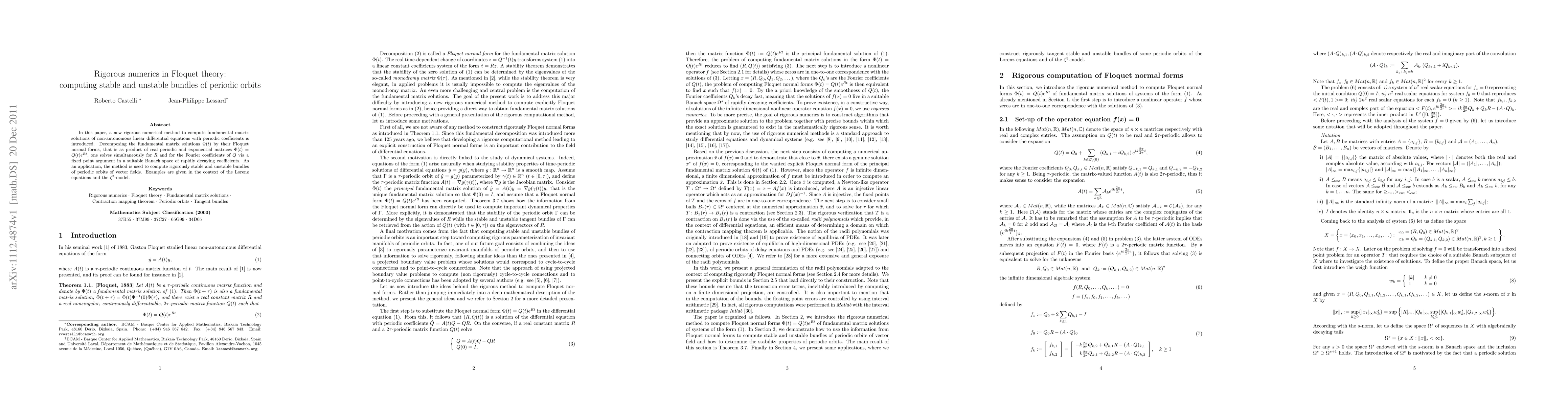 In this paper, a new rigorous numerical method to compute fundamental matrix solutions of non-autonomous linear differential equations with periodic coefficients is introduced. Decomposing the fundamental matrix solutions $\Phi(t)$ by their Floquet normal forms, that is as product of real periodic and exponential matrices $\Phi(t)=Q(t)e^{Rt}$, one solves simultaneously for $R$ and for the Fourier coefficients of $Q$ via a fixed point argument in a suitable Banach space of rapidly decaying coefficients. As an application, the method is used to compute rigorously stable and unstable bundles of periodic orbits of vector fields. Examples are given in the context of the Lorenz equations and the $\zeta^3$-model.