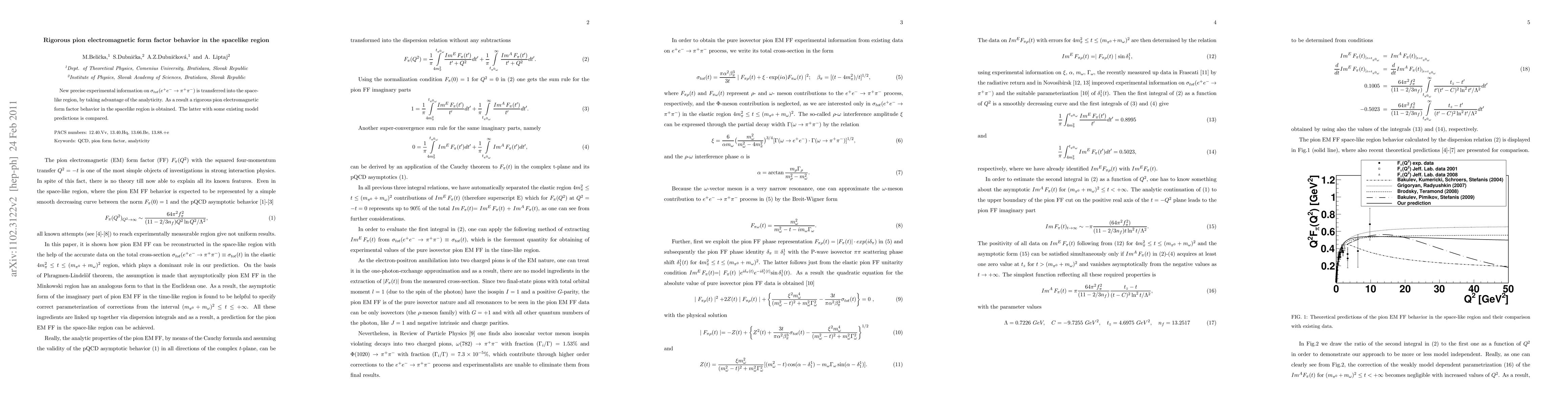 The paper presents a method to derive a pion EMFF behavior in the space-like region using dispersion relations, analyticity, and precise experimental data, providing a rigorous approach to study hadronic physics.