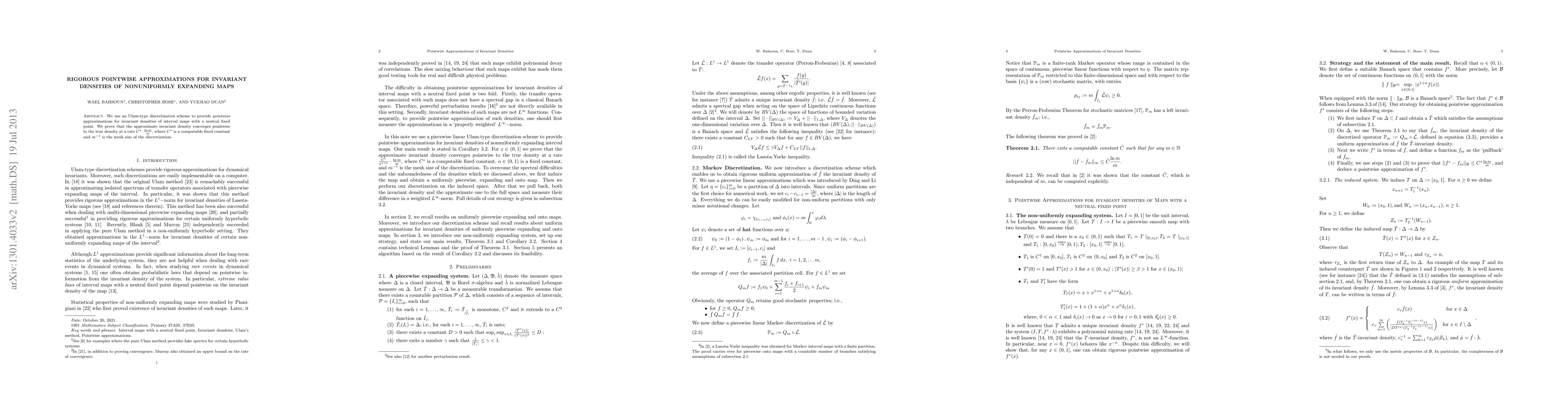 This paper presents an Ulam-type discretization scheme to approximate invariant densities for nonuniformly expanding maps with a neutral fixed point, proving pointwise convergence at a rate of $C^*\cdot\frac{\ln m}{m}$, where $C^*$ is a computable constant and $m^{-1}$ is the discretization mesh size.