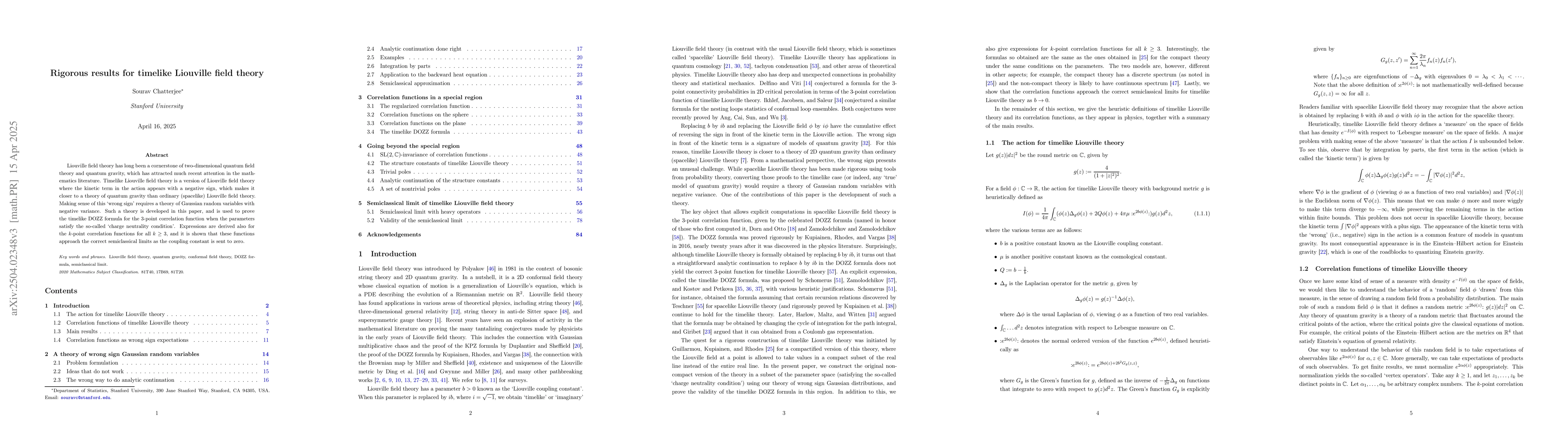 This research advances understanding of timelike Liouville field theory, a model closer to quantum gravity than spacelike Liouville, with potential implications for two-dimensional quantum field theory and quantum gravity.