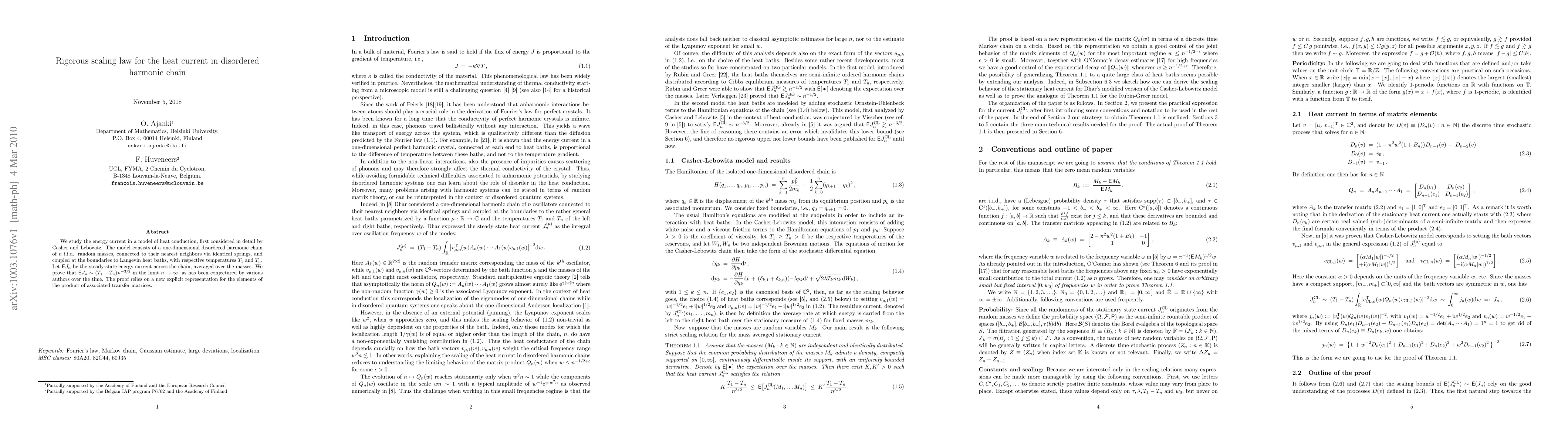 Researchers prove a rigorous scaling law for heat current in disordered harmonic chains, showing that energy flow is proportional to the temperature difference and inversely proportional to the square root of chain length.