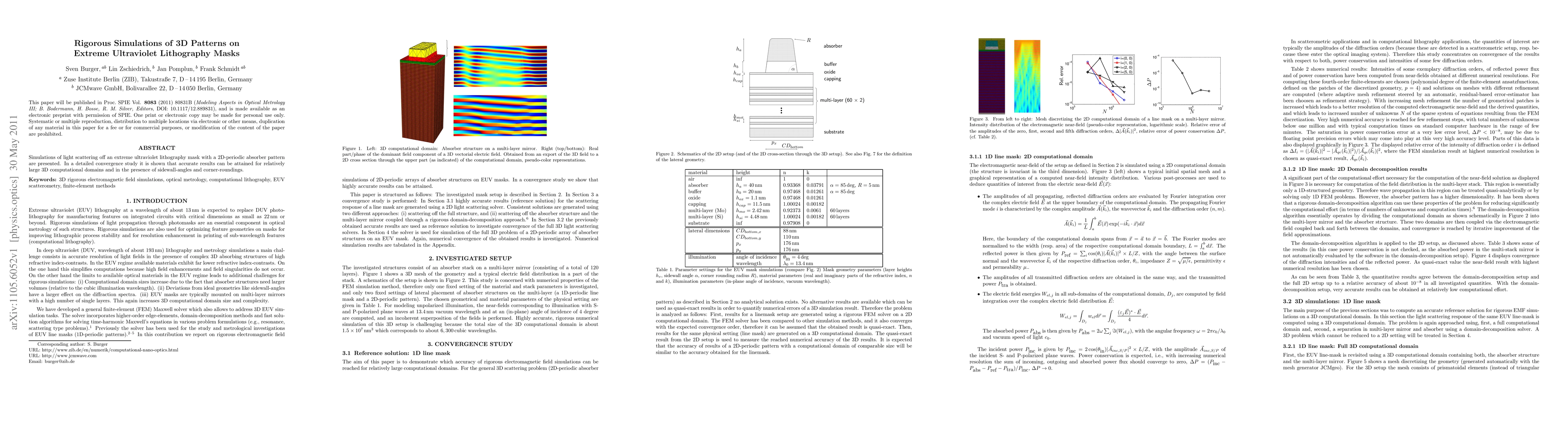 Simulations of light scattering off an extreme ultraviolet lithography mask with a 2D-periodic absorber pattern are presented. In a detailed convergence study it is shown that accurate results can be attained for relatively large 3D computational domains and in the presence of sidewall-angles and corner-roundings.