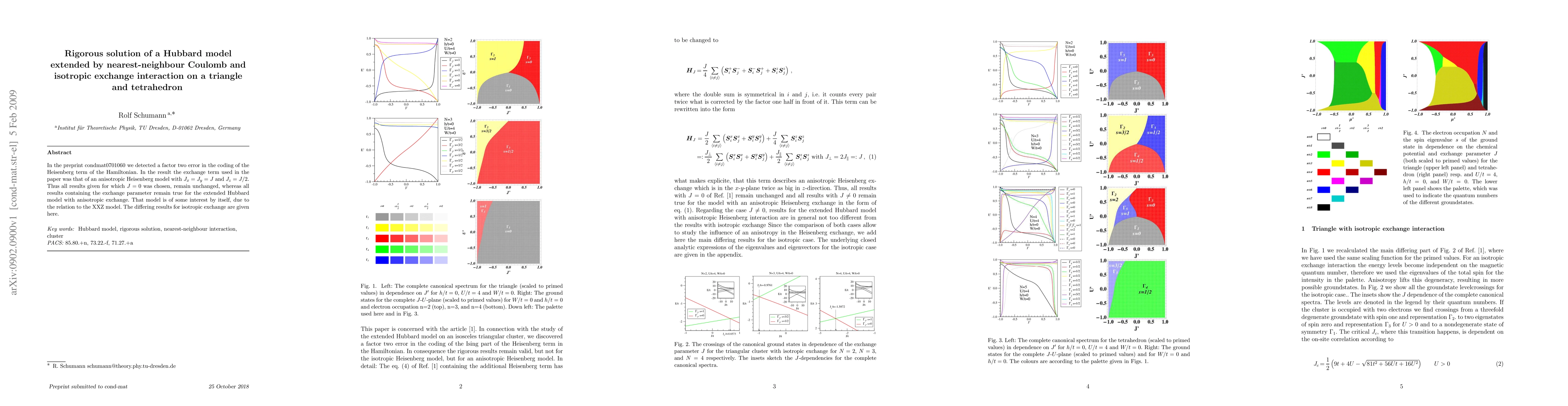 This paper corrects a coding error in the Heisenberg term of an extended Hubbard model, revealing that the exchange term was incorrectly modeled as anisotropic rather than isotropic. The corrected results for the extended Hubbard model with anisotropic exchange are provided, highlighting its relevance due to its connection to the XXZ model.