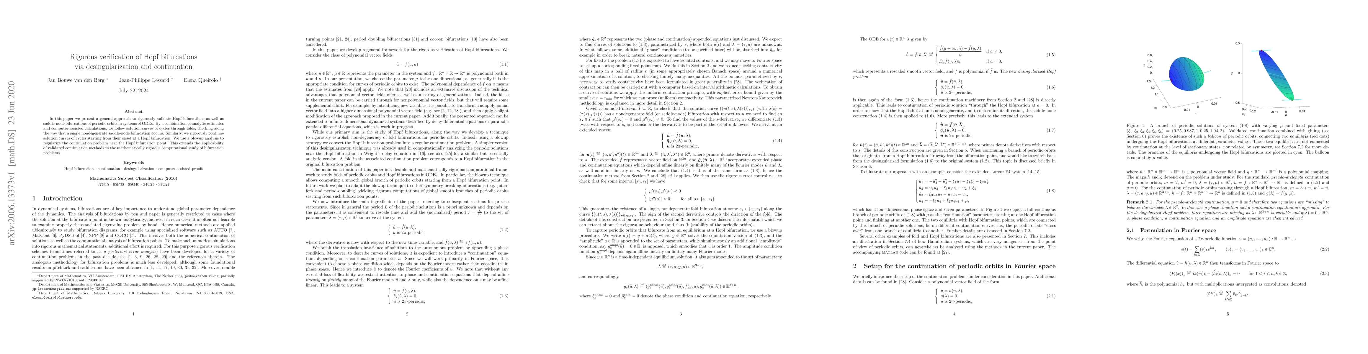 In this paper we present a general approach to rigorously validate Hopf bifurcations as well as saddle-node bifurcations of periodic orbits in systems of ODEs. By a combination of analytic estimates and computer-assisted calculations, we follow solution curves of cycles through folds, checking along the way that a single nondegenerate saddle-node bifurcation occurs. Similarly, we rigorously continue solution curves of cycles starting from their onset at a Hopf bifurcation. We use a blowup analysis to regularize the continuation problem near the Hopf bifurcation point. This extends the applicability of validated continuation methods to the mathematically rigorous computational study of bifurcation problems.