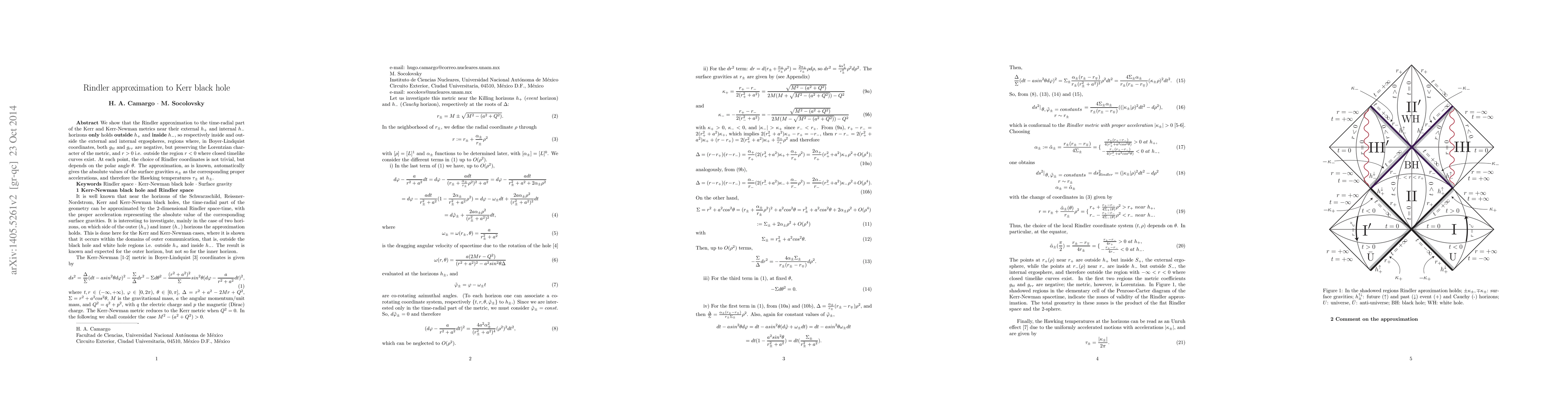 We show that the Rindler approximation to the time-radial part of the Kerr and Kerr-Newman metrics near their external $h_+$ and internal $h_-$ horizons {\bf only} holds {\bf outside} $h_+$ and {\bf inside} $h_-$, so respectively inside and outside the external and internal ergospheres, regions where, in Boyer-Lindquist coordinates, both $g_{tt}$ and $g_{rr}$ are negative, but preserving the Lorentzian character of the metric, and $r>0$ i.e. outside the region $r<0$ where closed timelike curves exist. At each point, the choice of Rindler coordinates is not trivial, but depends on the polar angle $\theta$. The approximation, as is known, automatically gives the absolute values of the surface gravities $\kappa_\pm$ as the corresponding proper accelerations, and therefore the Hawking temperatures $\tau_\pm$ at $h_\pm$.