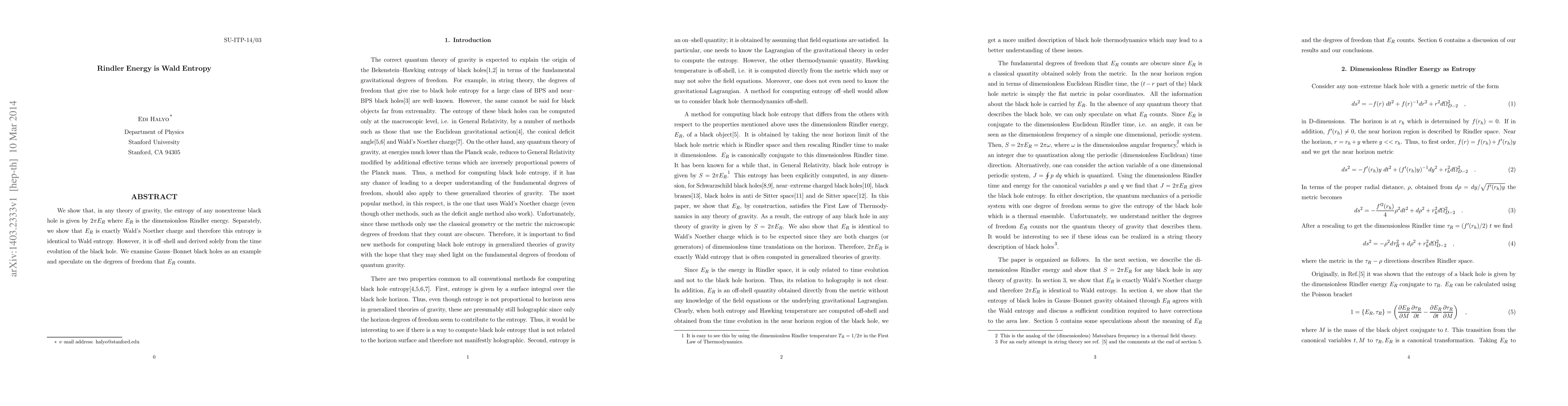 This paper demonstrates that the entropy of nonextreme black holes equals $2 \pi E_R$, where $E_R$ is the dimensionless Rindler energy, and shows that $E_R$ corresponds to Wald's Noether charge, thus equating Rindler energy entropy to Wald entropy. The study highlights the off-shell nature of the derivation and uses Gauss-Bonnet black holes to explore the counted degrees of freedom.