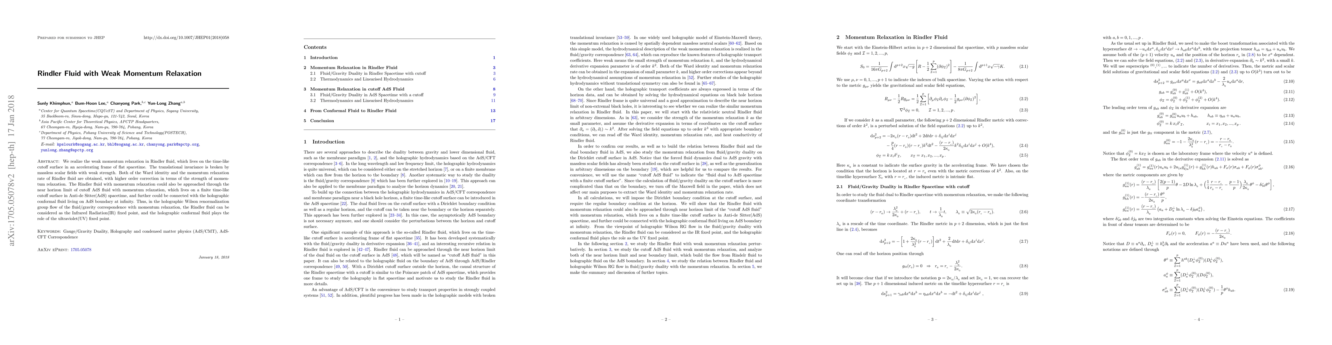 We realize the weak momentum relaxation in Rindler fluid, which lives on the time-like cutoff surface in an accelerating frame of flat spacetime. The translational invariance is broken by massless scalar fields with weak strength. Both of the Ward identity and the momentum relaxation rate of Rindler fluid are obtained, with higher order correction in terms of the strength of momentum relaxation. The Rindler fluid with momentum relaxation could also be approached through the near horizon limit of cutoff AdS fluid with momentum relaxation, which lives on a finite time-like cutoff surface in Anti-de Sitter(AdS) spacetime, and further could be connected with the holographic conformal fluid living on AdS boundary at infinity. Thus, in the holographic Wilson renormalization group flow of the fluid/gravity correspondence with momentum relaxation, the Rindler fluid can be considered as the Infrared Radiation(IR) fixed point, and the holographic conformal fluid plays the role of the ultraviolet(UV) fixed point.