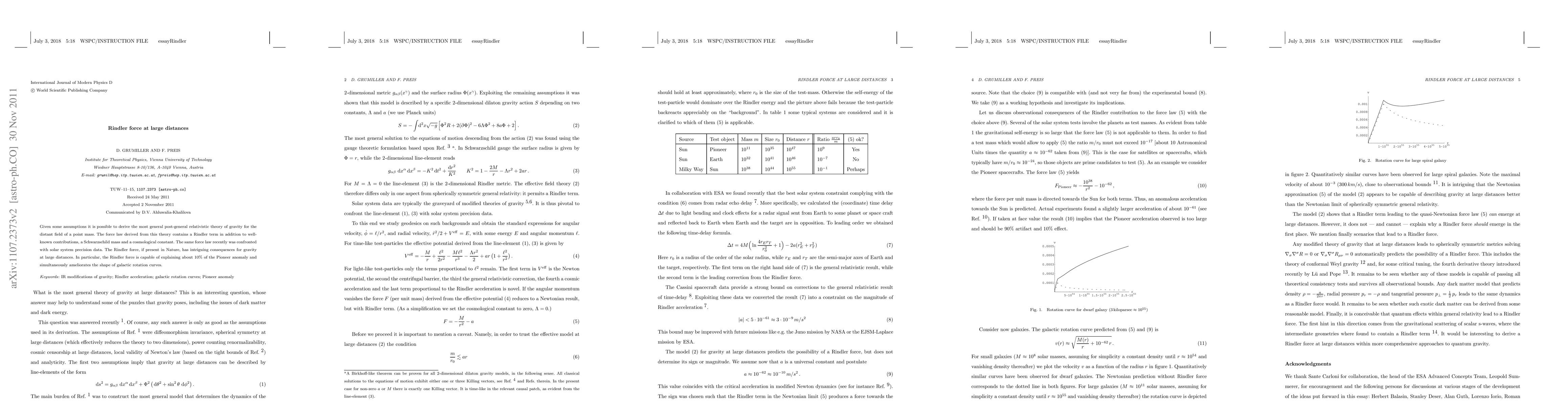 Given some assumptions it is possible to derive the most general post-general relativistic theory of gravity for the distant field of a point mass. The force law derived from this theory contains a Rindler term in addition to well-known contributions, a Schwarzschild mass and a cosmological constant. The same force law recently was confronted with solar system precision data. The Rindler force, if present in Nature, has intriguing consequences for gravity at large distances. In particular, the Rindler force is capable of explaining about 10% of the Pioneer anomaly and simultaneously ameliorates the shape of galactic rotation curves.