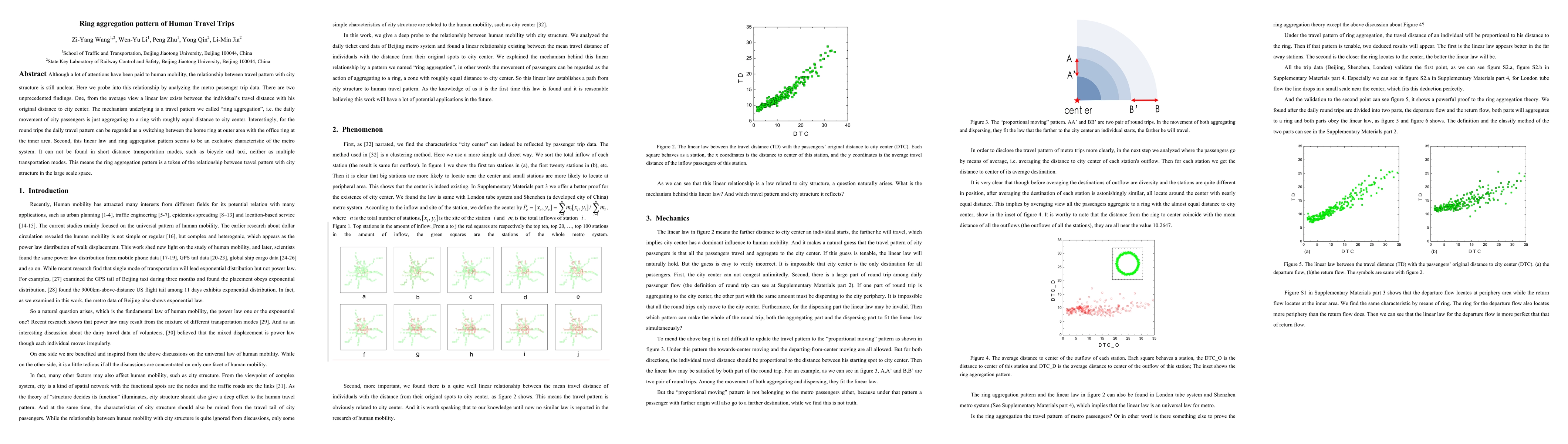 This paper investigates the relationship between human travel patterns and city structure using metro passenger trip data, revealing a "ring aggregation" pattern where daily movements aggregate to rings equidistant from the city center. This linear travel pattern is exclusive to metro systems and not observed in short-distance transportation modes like bicycle or taxi.