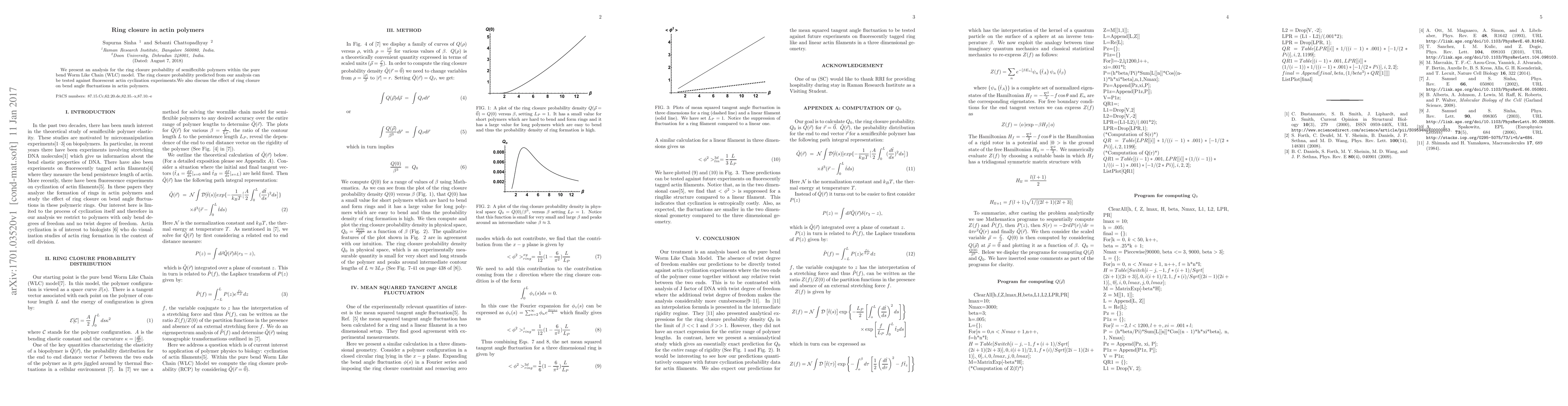 This paper analyzes the ring closure probability of semiflexible actin polymers using the pure bend Worm Like Chain (WLC) model and suggests experimental tests using fluorescent actin cyclization. It also explores how ring closure influences bend angle fluctuations in actin polymers.