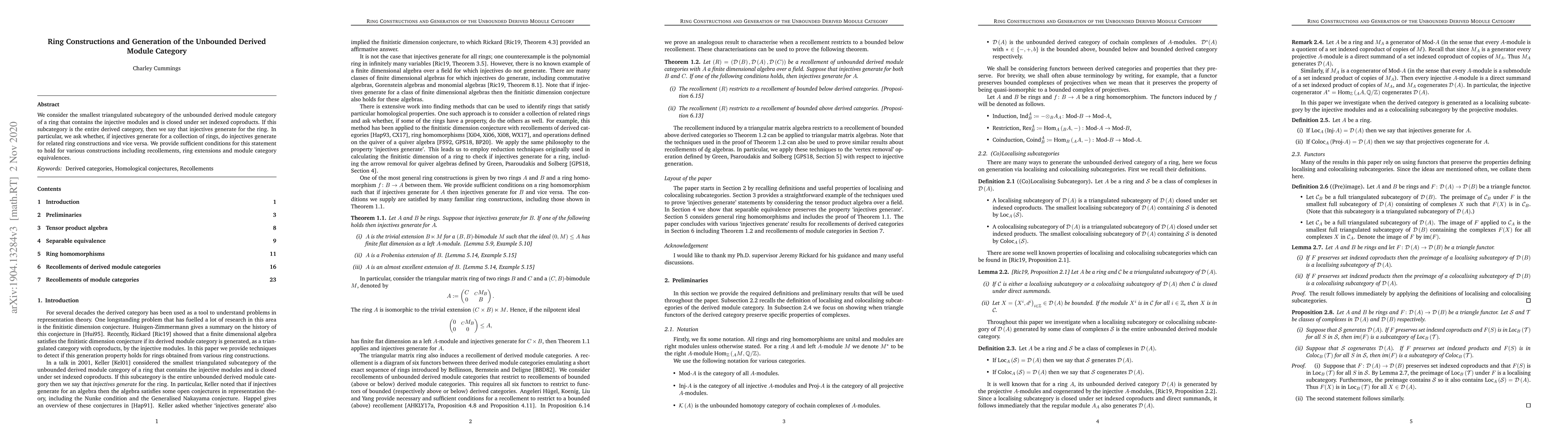 Researchers investigate whether injective modules can generate a ring category through various constructions like recollements, ring extensions, and module equivalences, providing sufficient conditions for these processes.