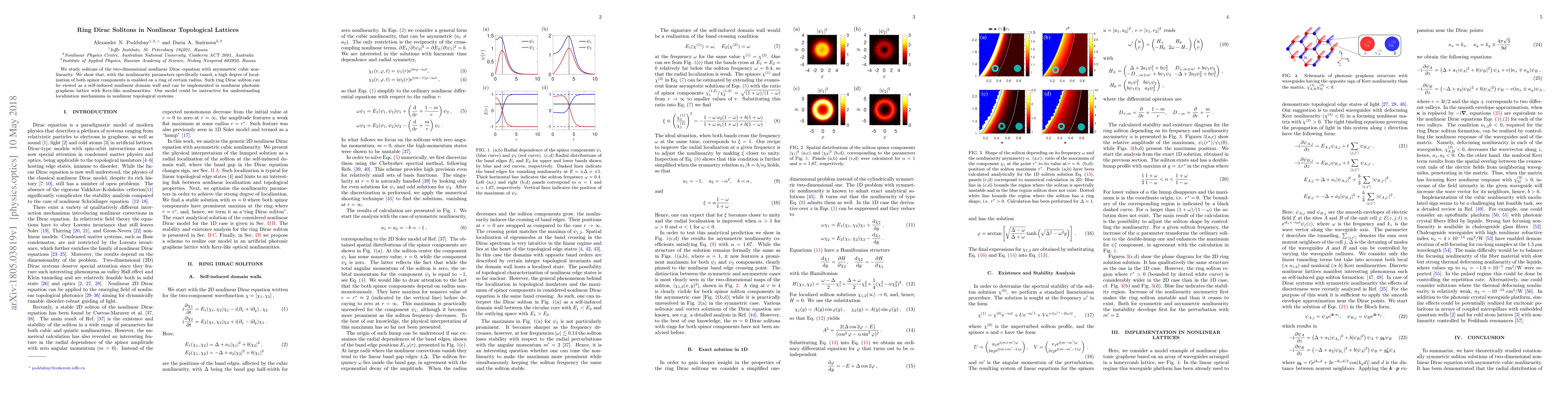 Researchers discovered a type of soliton in a 2D nonlinear Dirac equation that can form a ring-shaped structure with high localization, which could lead to the creation of self-induced domain walls in non-linear photonic graphene lattices.