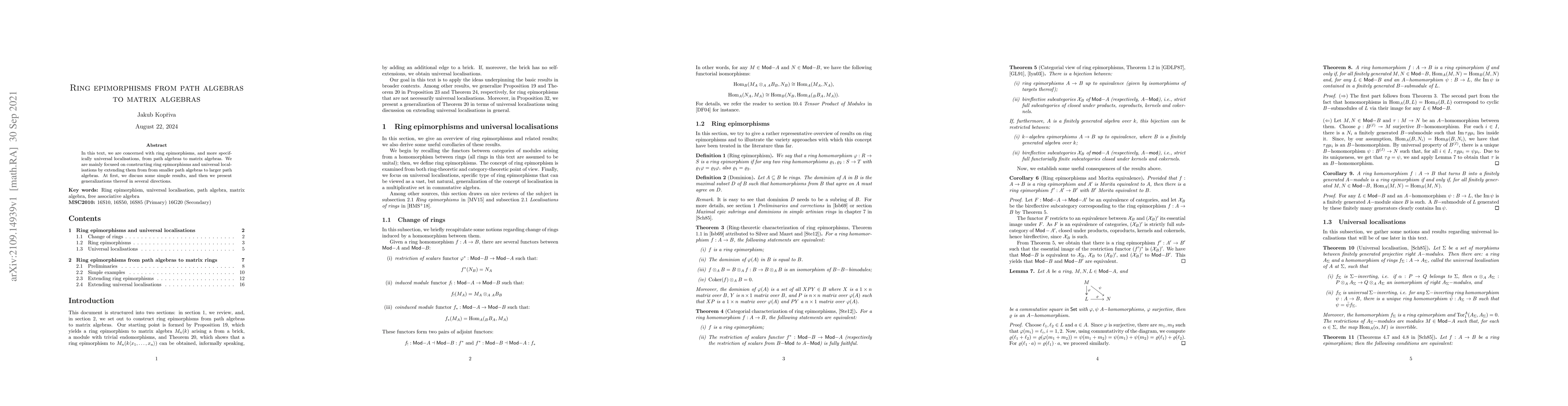 In this text, we are concerned with ring epimorphisms, and more specifically universal localisations, from path algebras to matrix algebras. We are mainly focused on constructing ring epimorphisms and universal localisations by extending them from from smaller path algebras to larger path algebras. At first, we discuss some simple results, and then we present generalizations thereof in several directions.