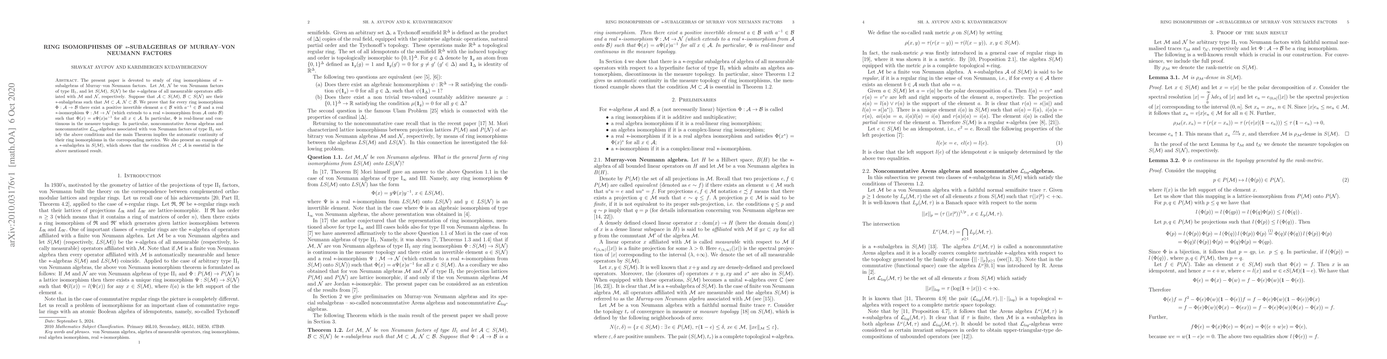 The present paper is devoted to study of ring isomorphisms of $\ast$-subalgebras of Murray--von Neumann factors. Let $\cM,$ $\cN$ be von Neumann factors of type II$_1,$ and let $S(\cM),$ $S(\cN)$ be the $\ast$-algebras of all measurable operators affiliated with $\cM$ and $ \cN,$ respectively. Suppose that $\cA\subset S(\cM),$ $\cB\subset S(\cN)$ are their $\ast$-subalgebras such that $\cM\subset \cA,$ $\cN\subset \cB.$ We prove that for every ring isomorphism $\Phi: \cA \to \cB$ there exist a positive invertible element $a \in \cB$ with $a^{-1}\in \cB$ and a real $\ast$-isomorphism $\Psi: \cM \to \cN$ (which extends to a real $\ast$-isomorphism from $\cA$ onto $\cB$) such that $\Phi(x) = a\Psi(x)a^{-1}$ for all $x \in \cA.$ In particular, $\Phi$ is real-linear and continuous in the measure topology. In particular, noncommutative Arens algebras and noncommutative $\cL_{log}$-algebras associated with von Neumann factors of type II$_1$ satisfy the above conditions and the main Theorem implies the automatic continuity of their ring isomorphisms in the corresponding metrics. We also present an example of a $\ast$-subalgebra in $S(\cM),$ which shows that the condition $\cM\subset \cA$ is essential in the above mentioned result.