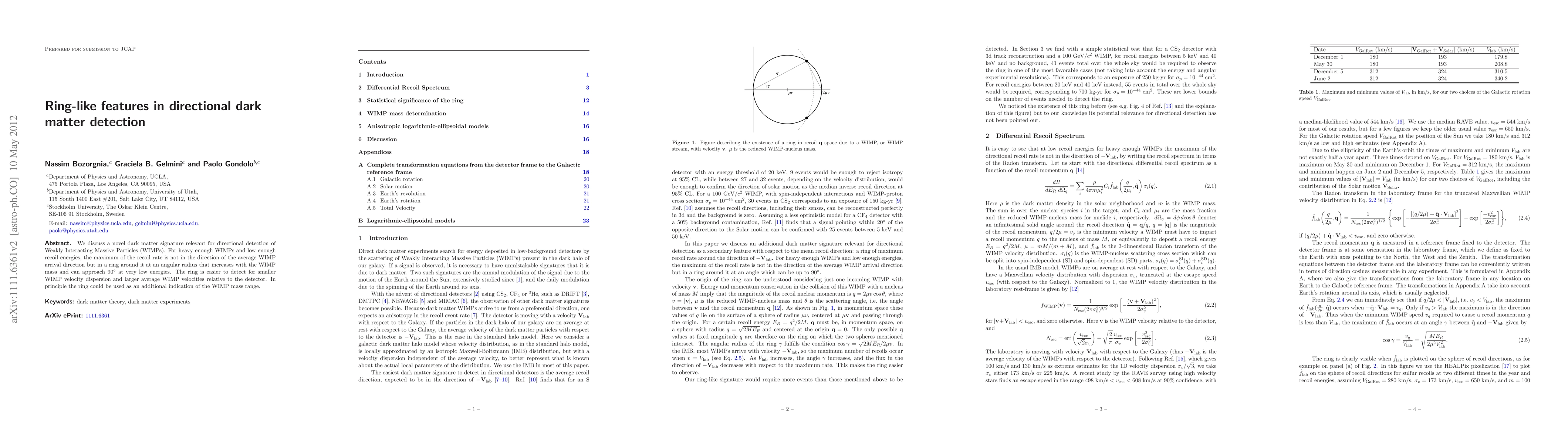 We discuss a novel dark matter signature relevant for directional detection of Weakly Interacting Massive Particles (WIMPs). For heavy enough WIMPs and low enough recoil energies, the maximum of the recoil rate is not in the direction of the average WIMP arrival direction but in a ring around it at an angular radius that increases with the WIMP mass and can approach 90 degrees at very low energies. The ring is easier to detect for smaller WIMP velocity dispersion and larger average WIMP velocities relative to the detector. In principle the ring could be used as an additional indication of the WIMP mass range.